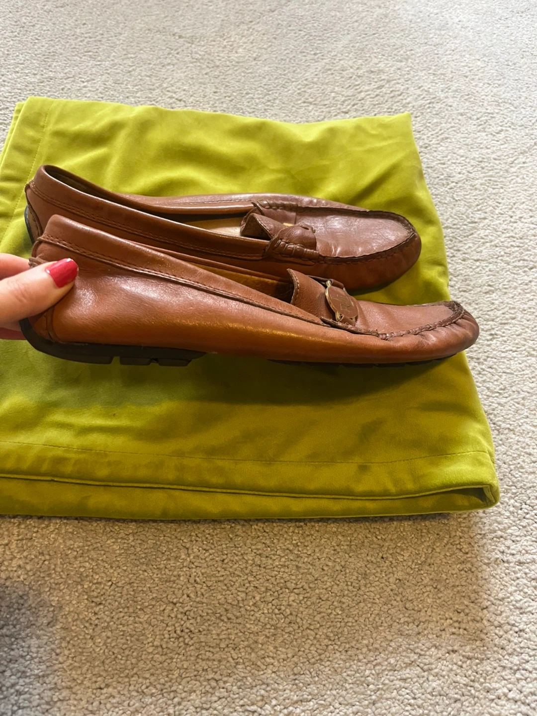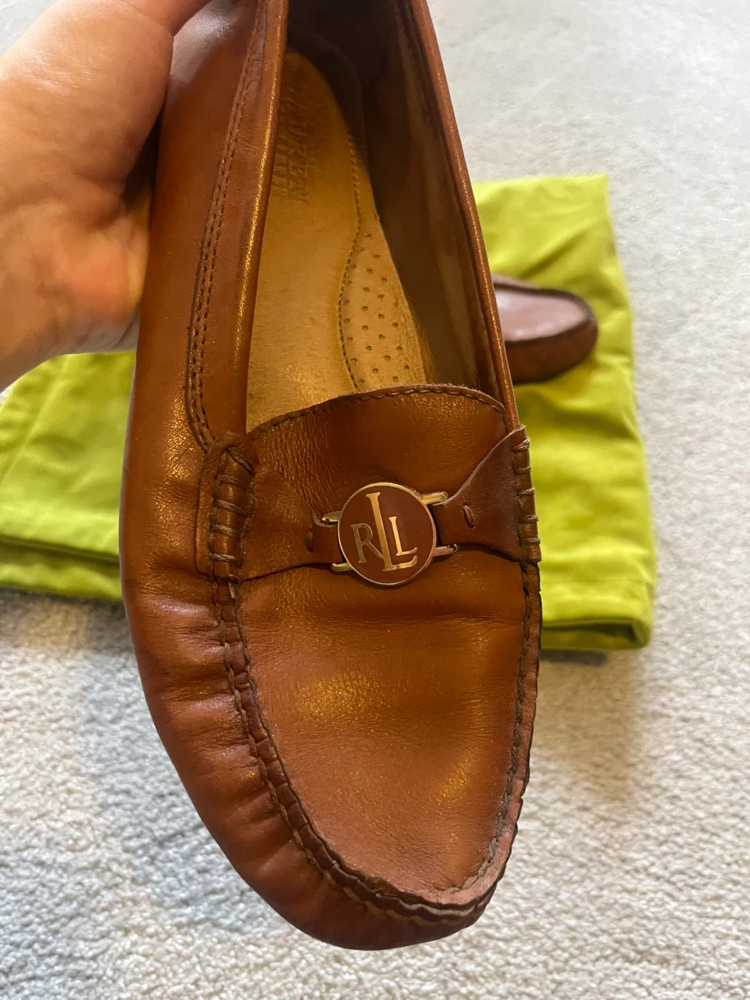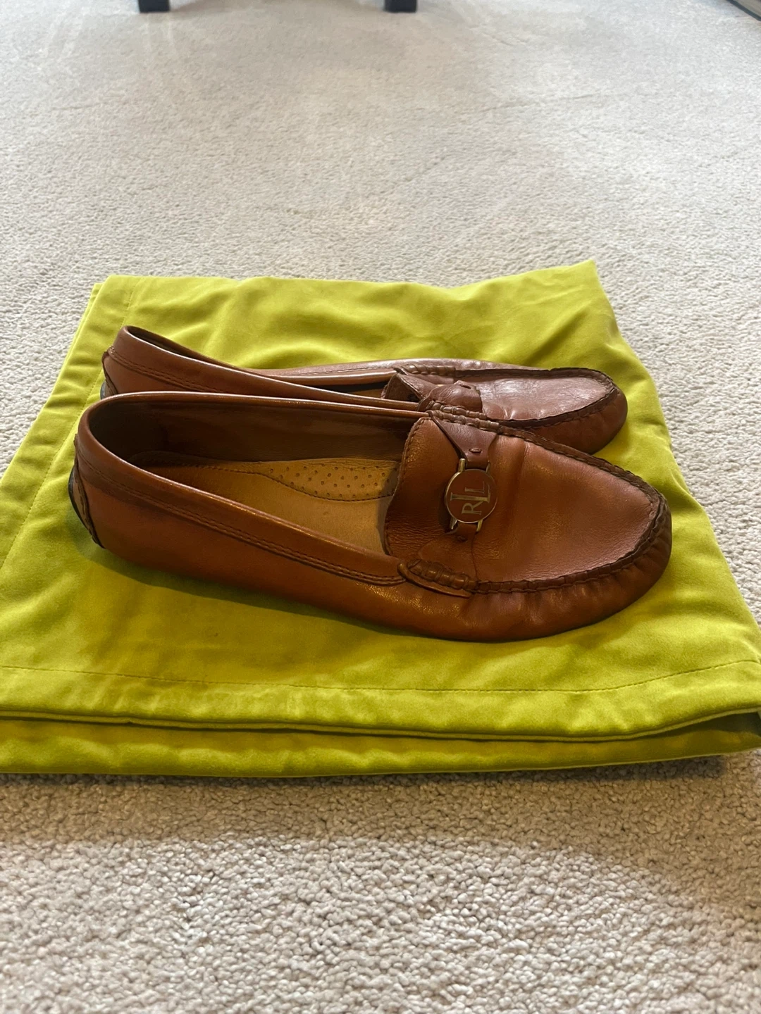 Classic brown leather loafers from Lauren Ralph Lauren. They feature a signature RL logo accent on the vamp. Perfect for everyday wear! You can pick them up in North York or I can meet you in downtown Toronto on the Yonge line