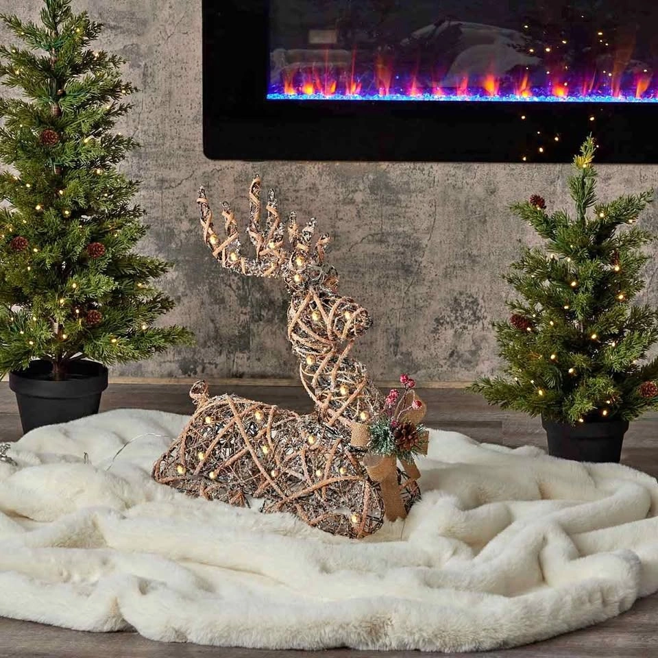 Natural Rattan Reindeer w/ Warm White LED Lights