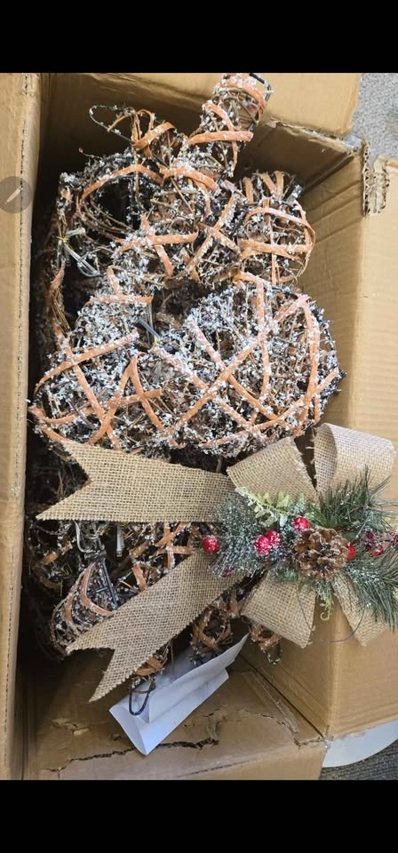 This natural rattan reindeer is 32" H x 9" W x 33" D. It comes pre-lit with 50 warm white LED lights and is safe for indoor or outdoor use. It also has a built-in timer to automatically turn the lights on and off. Minor assembly is required.
