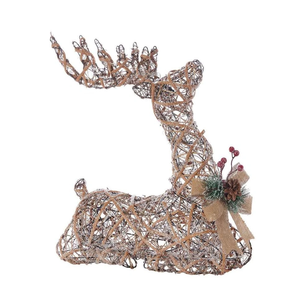 Natural Rattan Reindeer w/ Warm White LED Lights