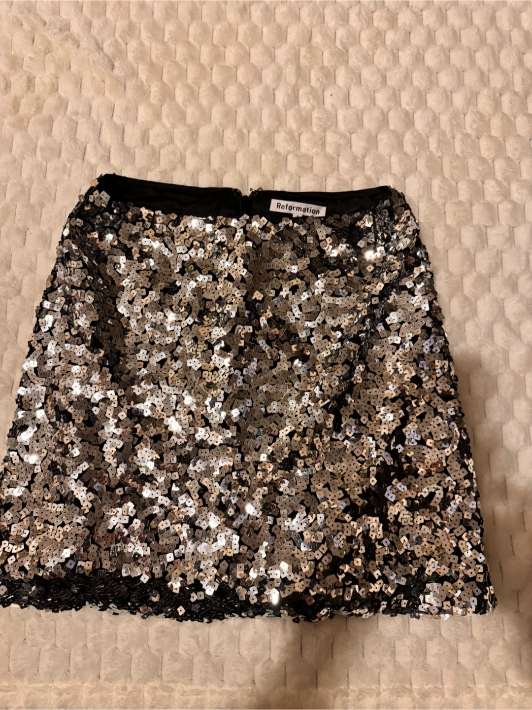 Sparkly sequin skirt from Reformation. It's a size 6. This skirt would be fun for a night out or a party!