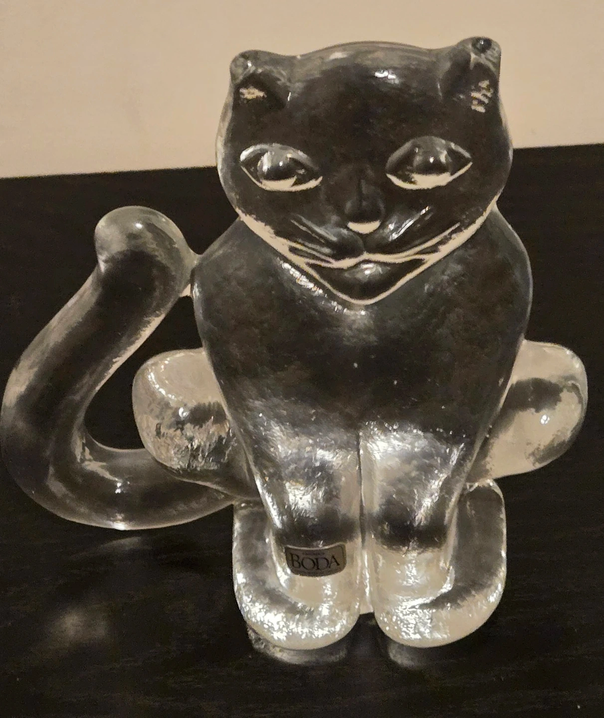 Vintage 1970's Boda Art Glass Crystal Cat Figurine