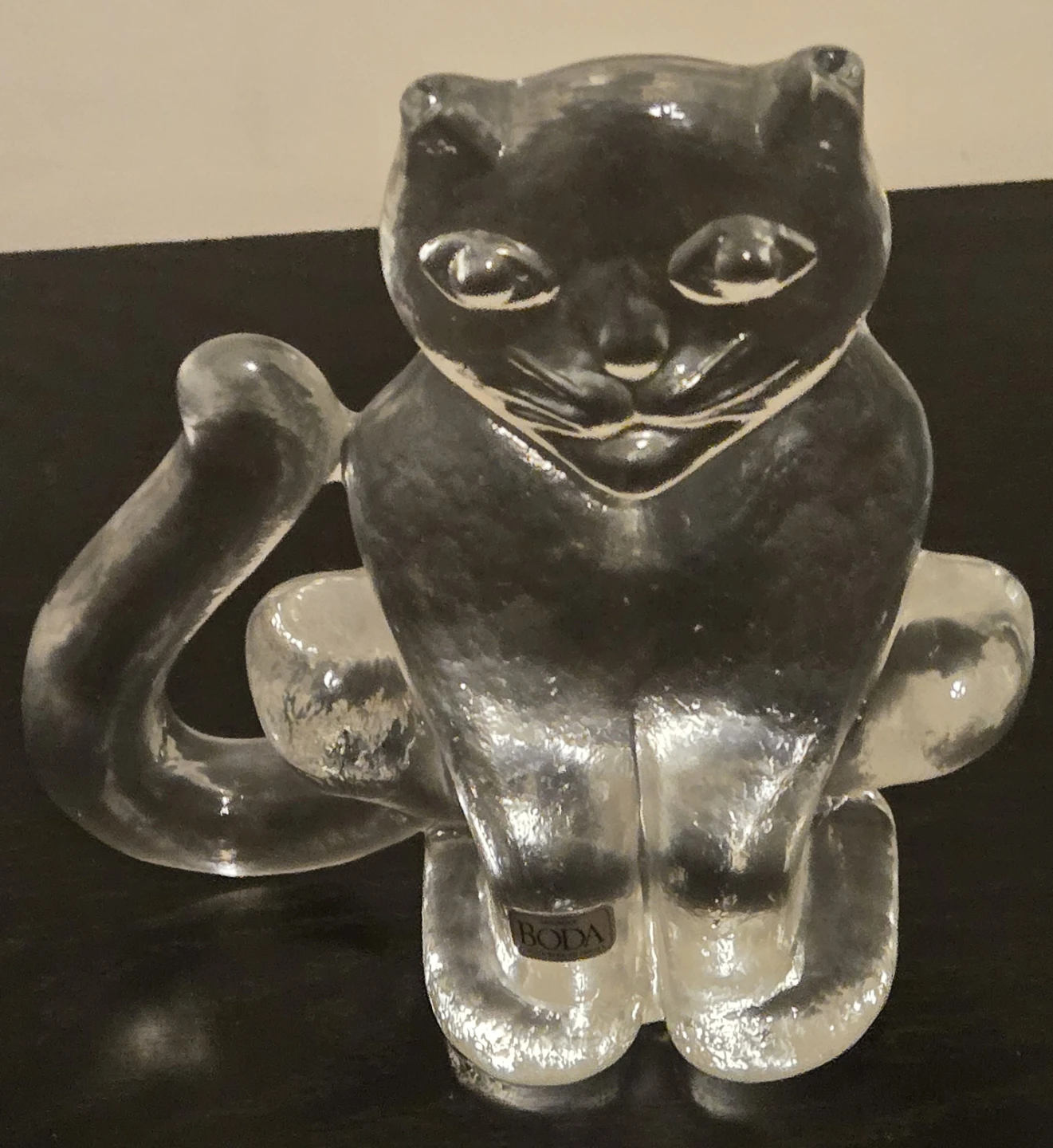 Vintage 1970's Boda Art Glass Crystal Cat Figurine