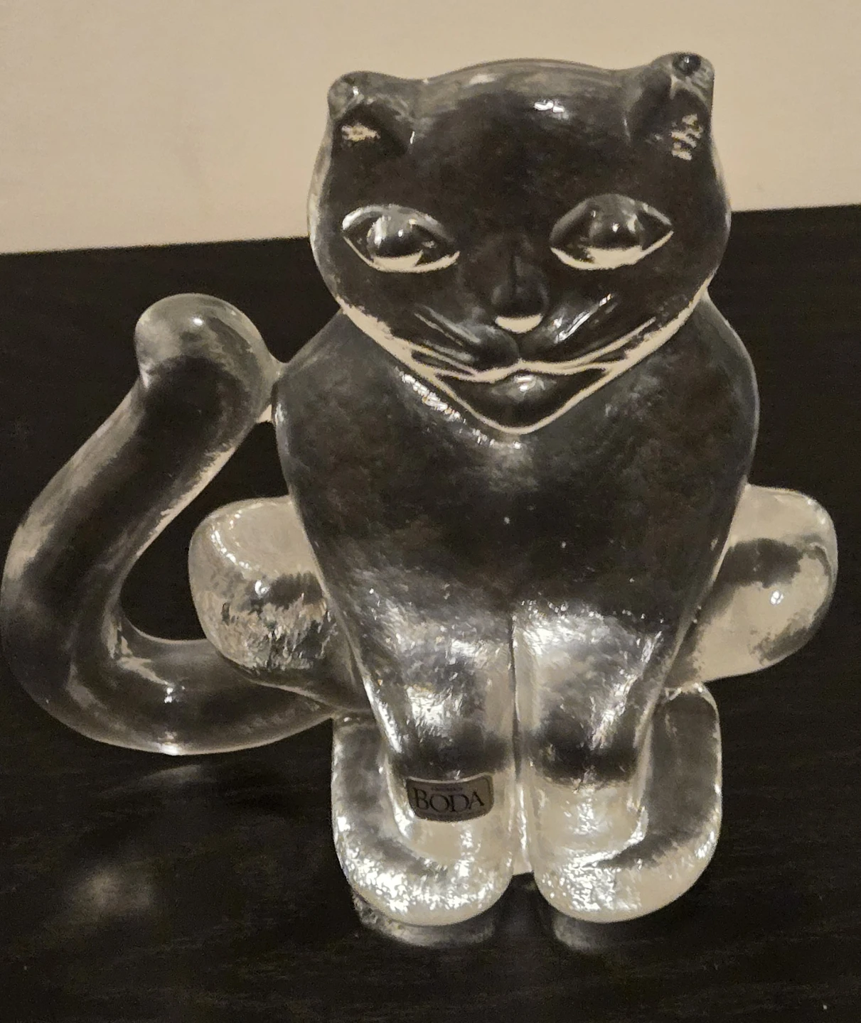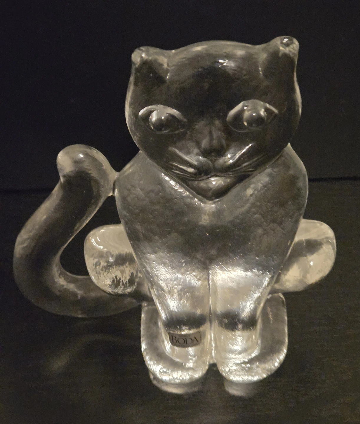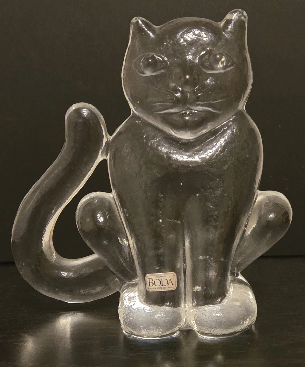 Vintage 1970's Kosta Boda Exquisite Art Glass Crystal. Part of the Zoo series designed by Swedish artist Berti Vallien. Still has Original Boda Label. Like New Condition. Textured Glass Front. There Were 2 Sizes for this Cat, Small and Large. This is the Large at 5 3/4" Height.