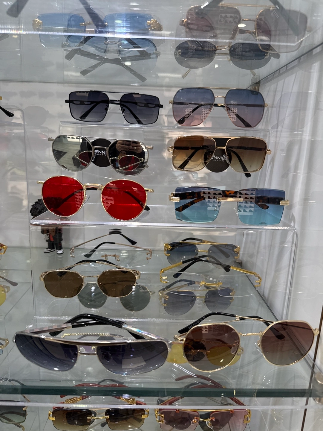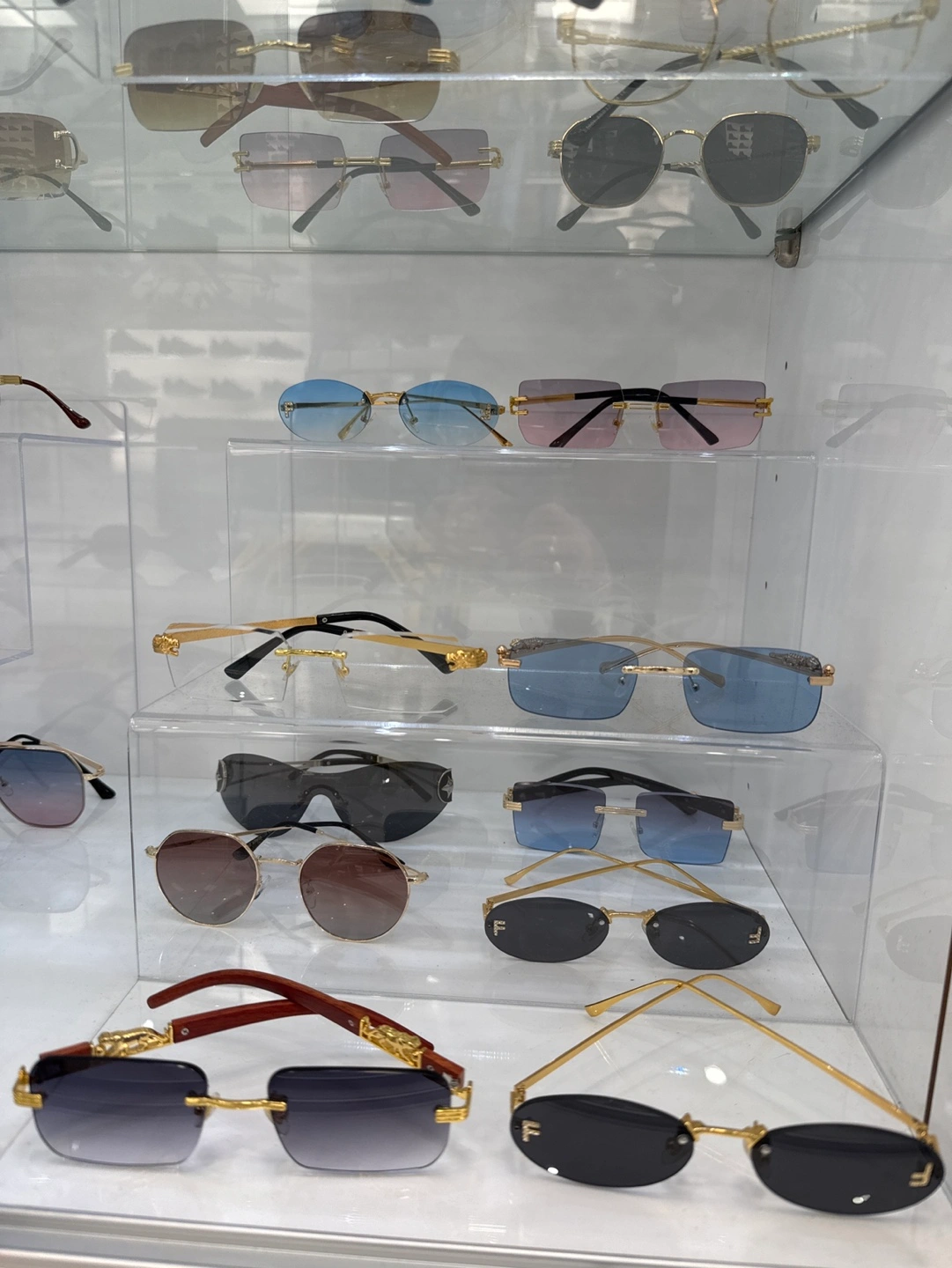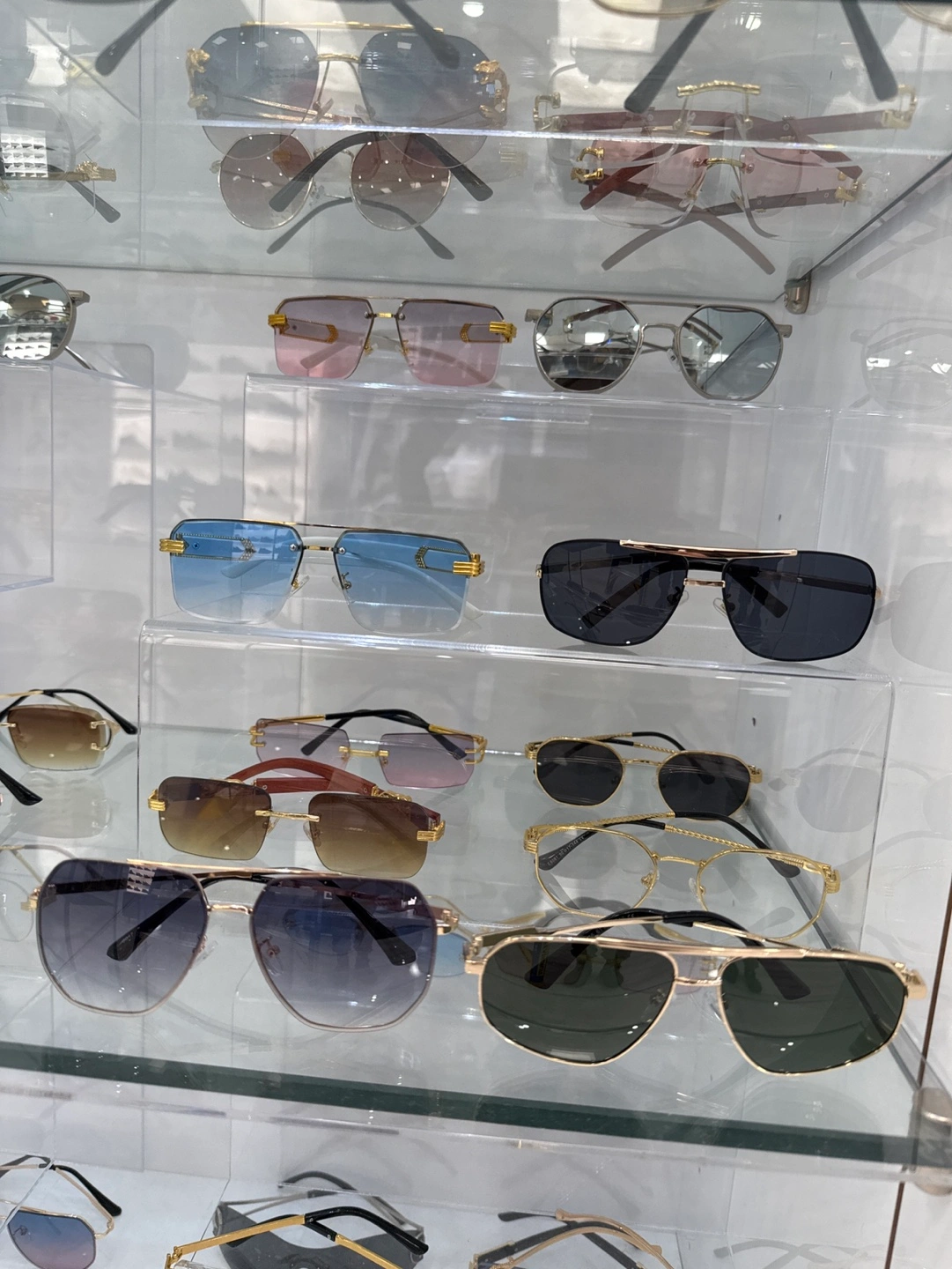 Collection of stylish sunglasses. Many colours and styles available. Gold accents on several frames. Check images for details.
