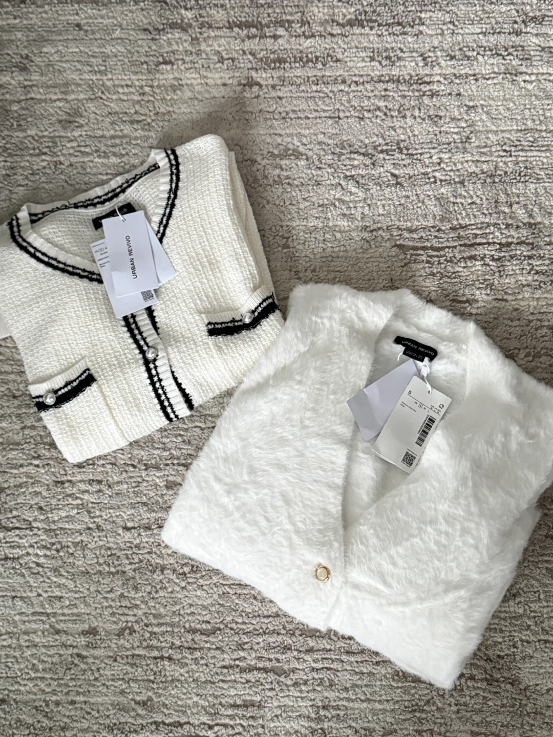 I have two brand new cardigans from Urban Revivo for sale! One is a classic cream-coloured tweed knit with black trim, Size