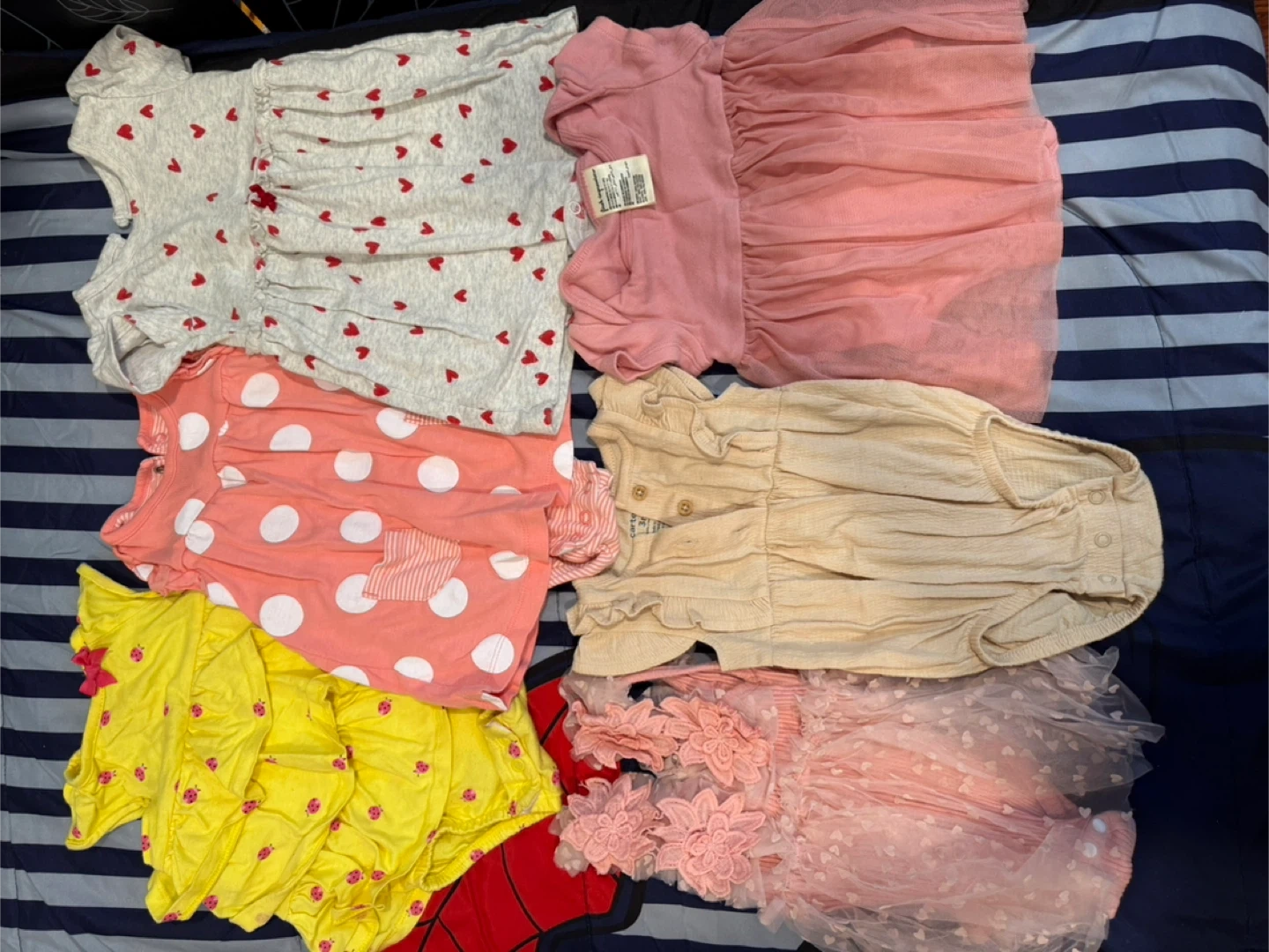 Selling a bundle of gently used baby clothes in various sizes and brands! Includes pajamas, onesies, and outfits. Perfect for your little one!