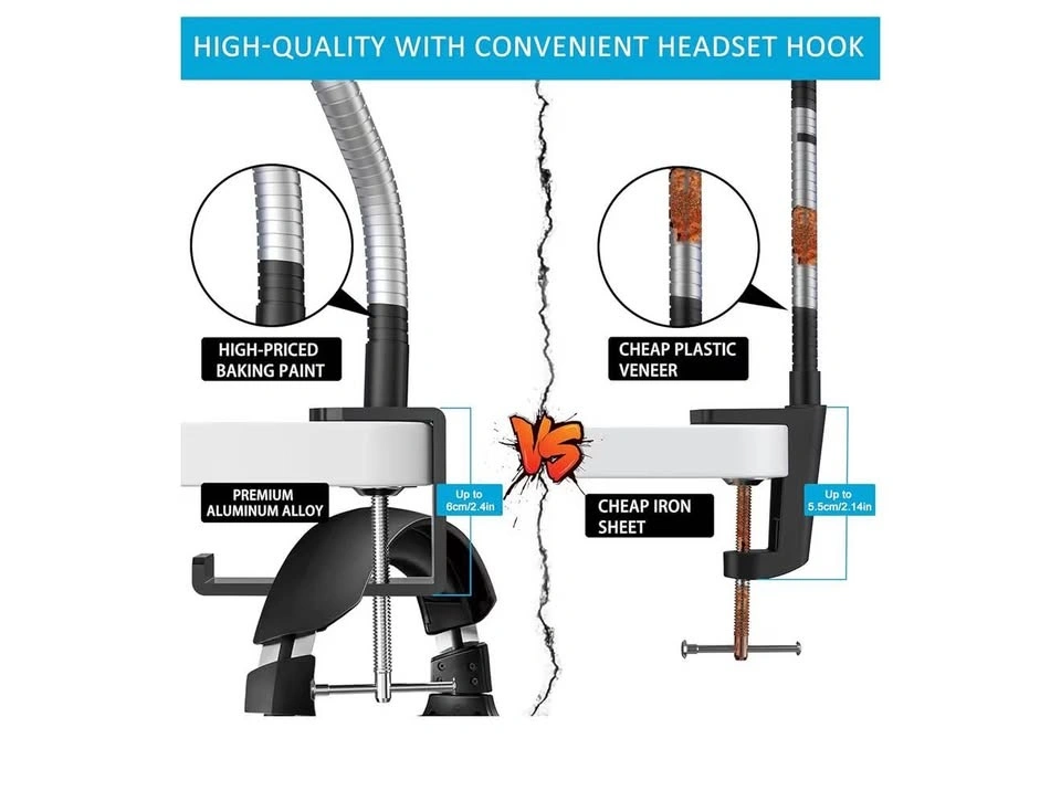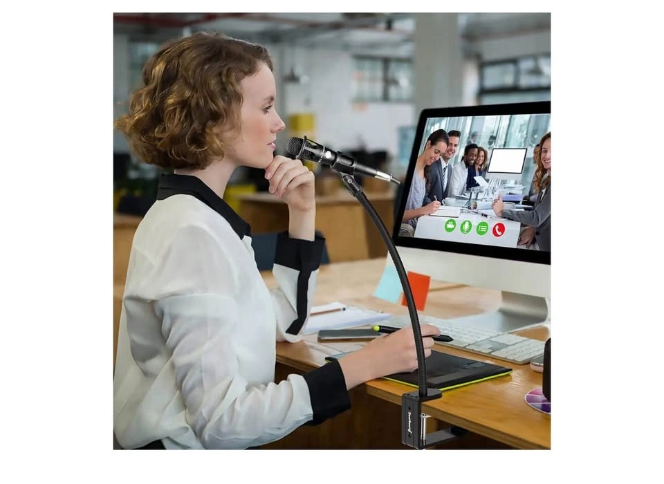 ZealSound Microphone Arm Stand, 19 Inch Long Universal Gooseneck Desktop Mic Stand with 3/8" to 5/8" Adapter and Microphone Clip Holder, Upgraded Heavy Duty Desk Clamp Compatible with Snowball Ice