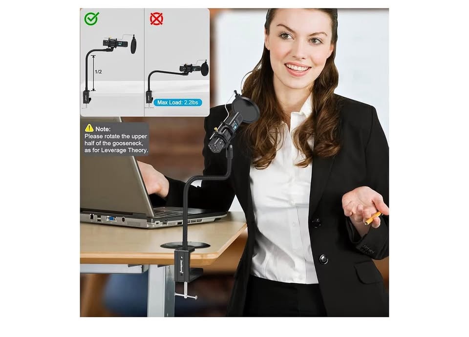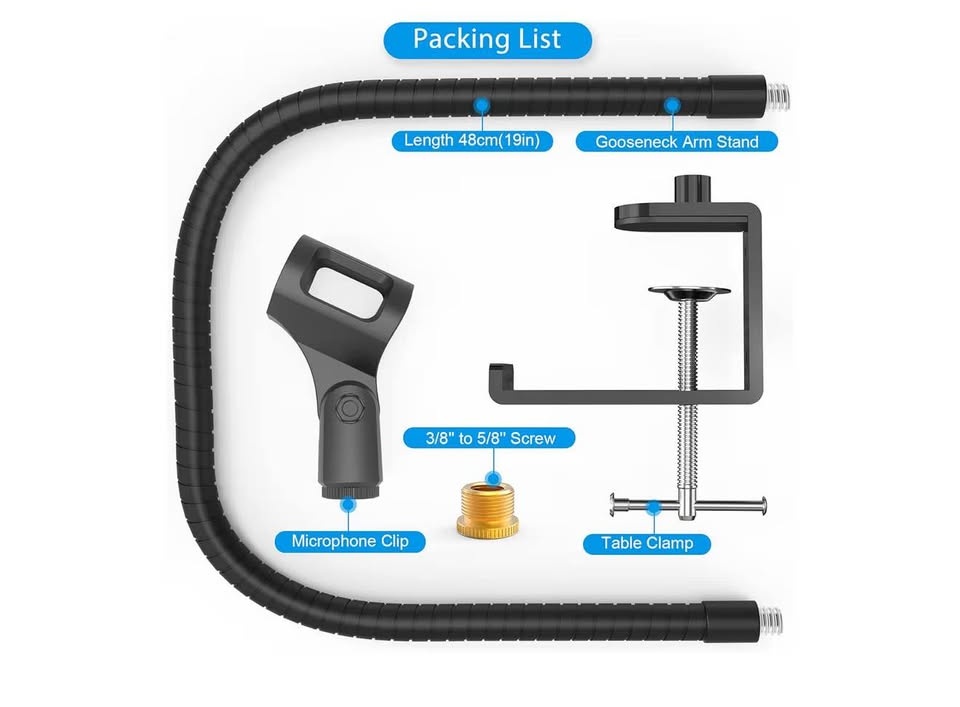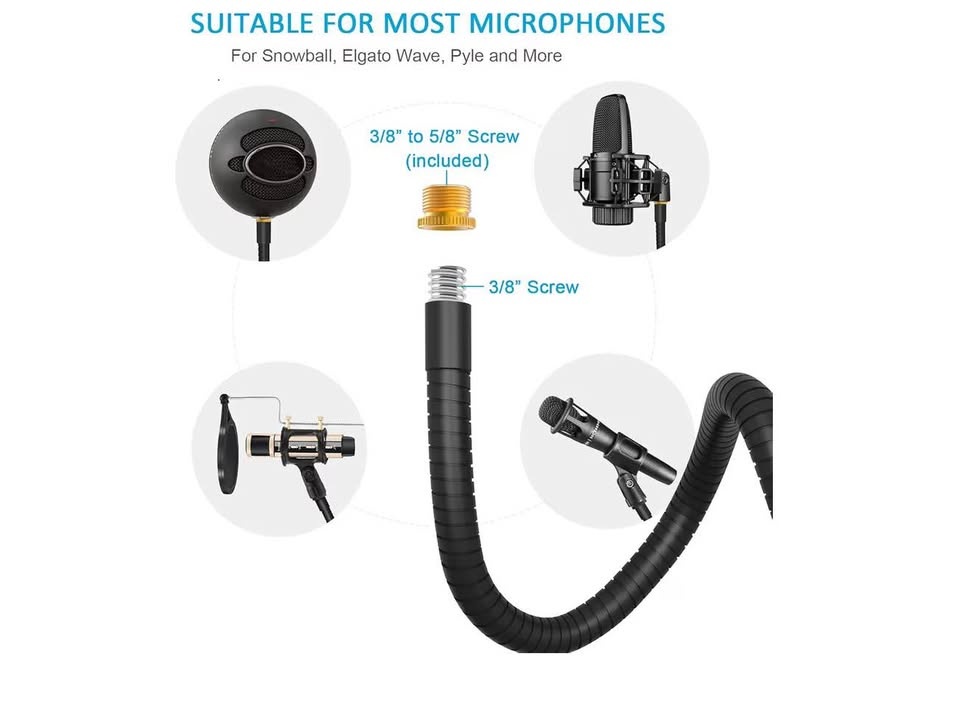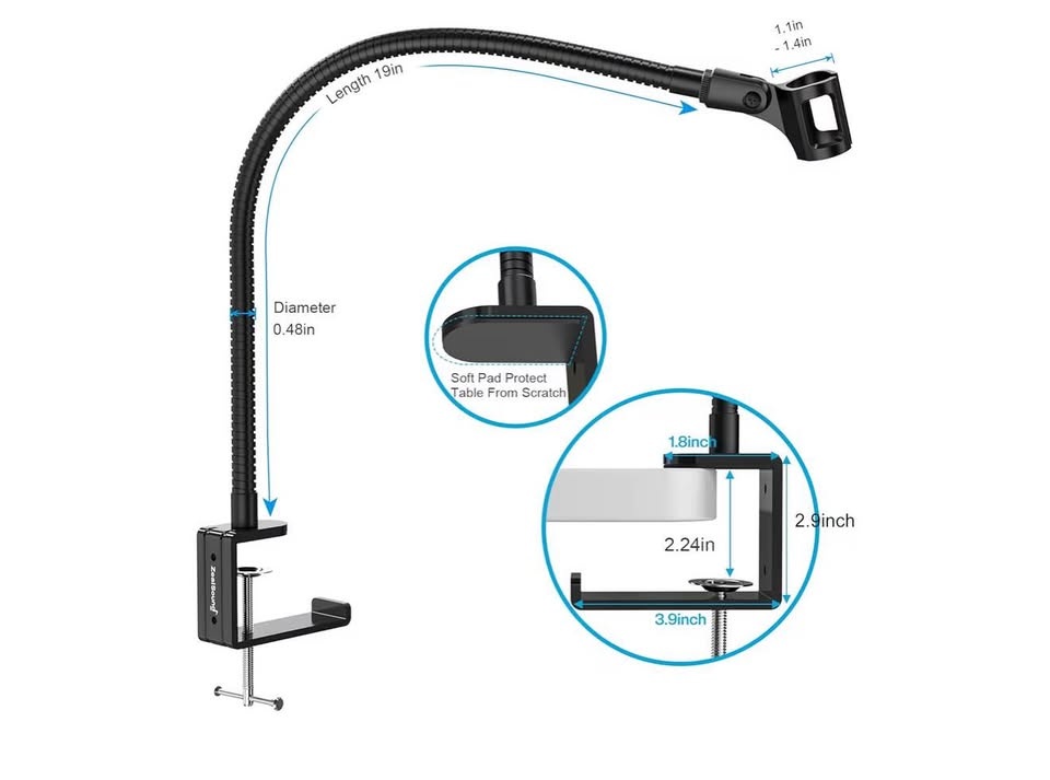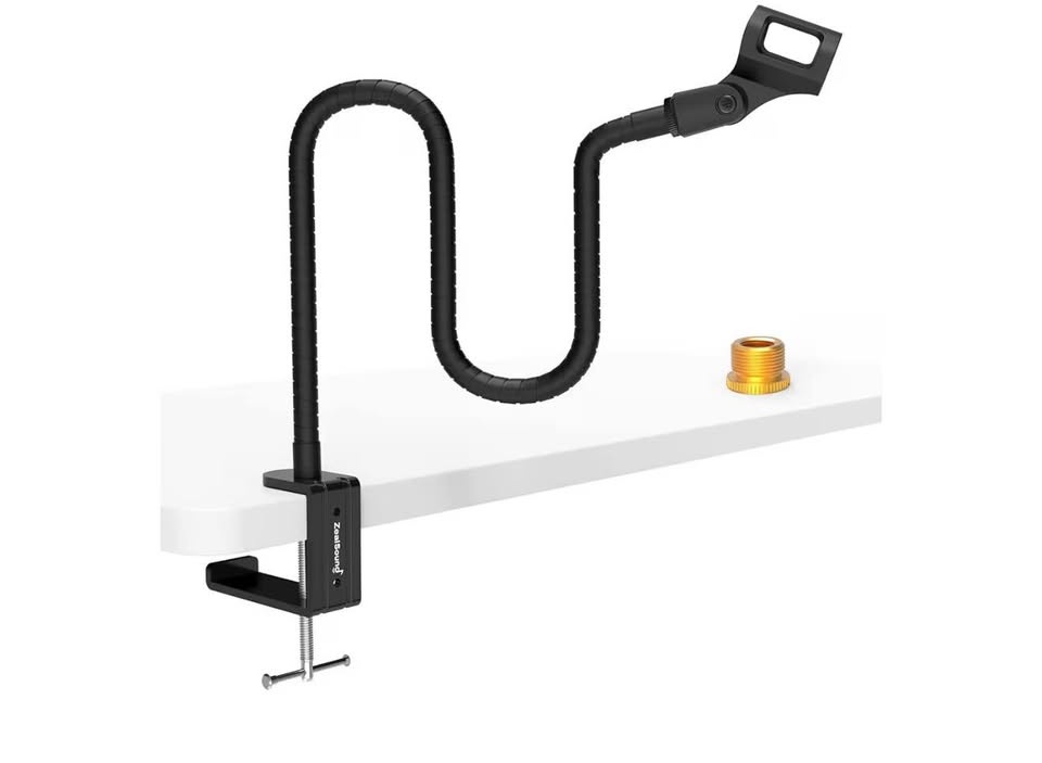 ZealSound Microphone Arm Stand, 19 Inch Long Universal Gooseneck Desktop Mic Stand with 3/8" to 5/8" Adapter and Microphone Clip Holder, Upgraded Heavy Duty Desk Clamp Compatible with Snowball Ice
