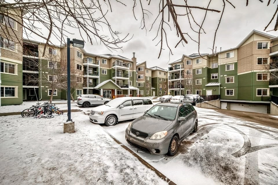 Solid built concrete and steel frame building ---TERRA SOL COURT. This top floor unit offers 2 bedrooms and 2 full bathrooms. VINYL PLANK flooring throughout. Open kitchen concept overlooking the dining and living room. Downtown view from the balcony. Includes one underground parking stall. The complex has an EXERCISE ROOM and SOCIAL ROOM. HARDI PLANK CEMENT BOARD SIDING provides better insulation and soundproofing. Heat pump system for HEAT and COOL. Walking distance to PUBLIC TRANSIT, POND, PARK. Close to COSTCO, SCHOOL, RIVER CREE and all amenities. Easy access to ANTHONY HENDAY and WHITEMUD freeway.