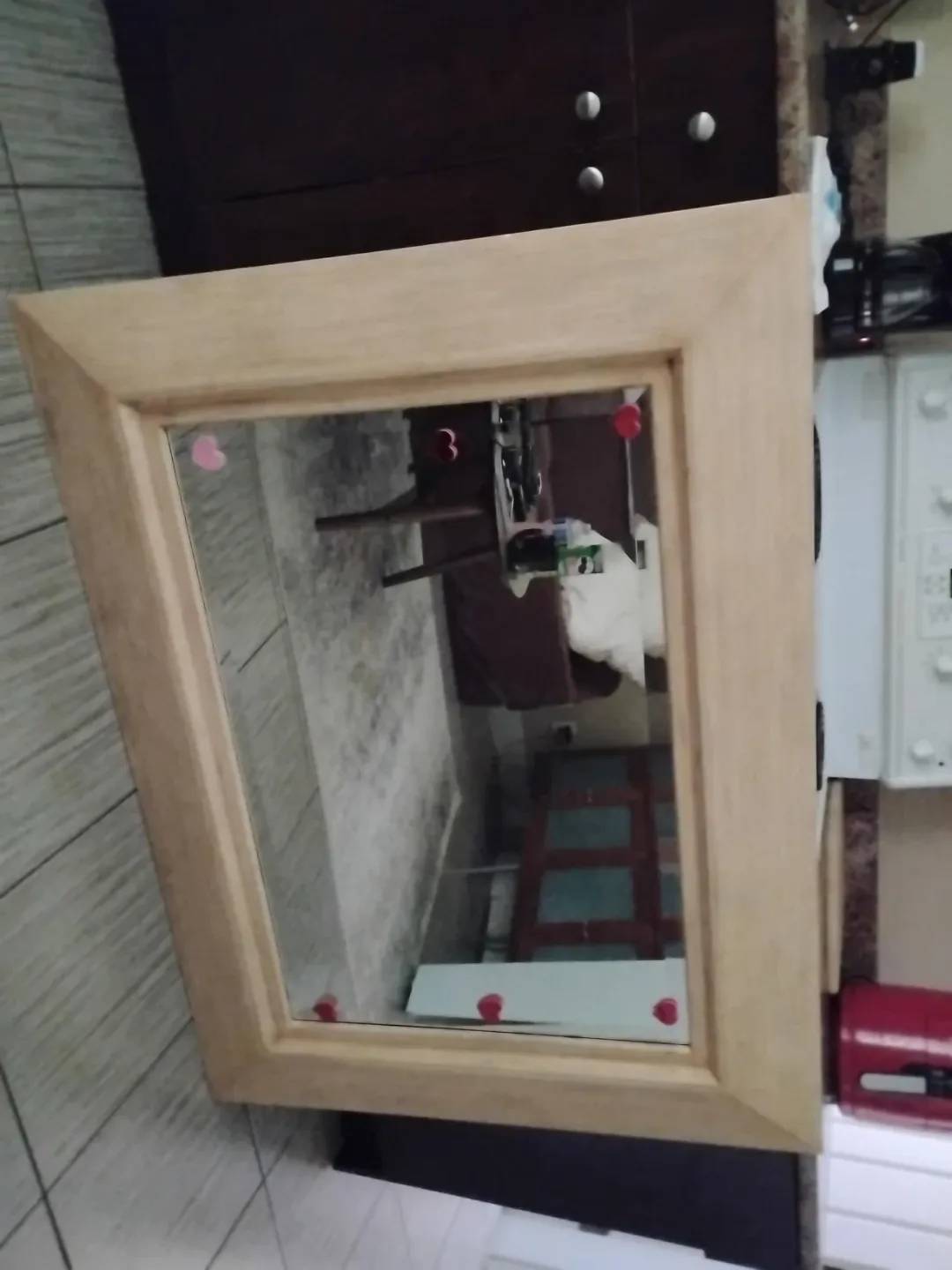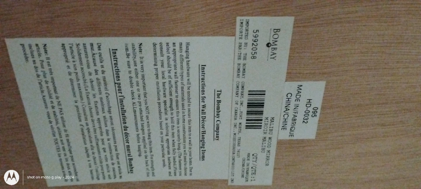 It's a Bombay mirror that's in perfect condition and has 2 set of hardware so you can hang it vertical or horizontal and the dimensions are L 48"×w37"×D 3" and 45$ is a great price