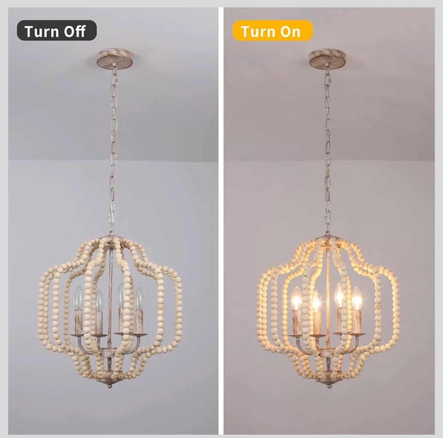 This beaded chandelier adds a rustic charm to your space. It's a 4-light fixture with an adjustable chain. The canopy measures 12cm (4.7"). The fixture is 51cm (20") high and 45cm (17.7") wide. This light would be nice in a dining room or entryway!