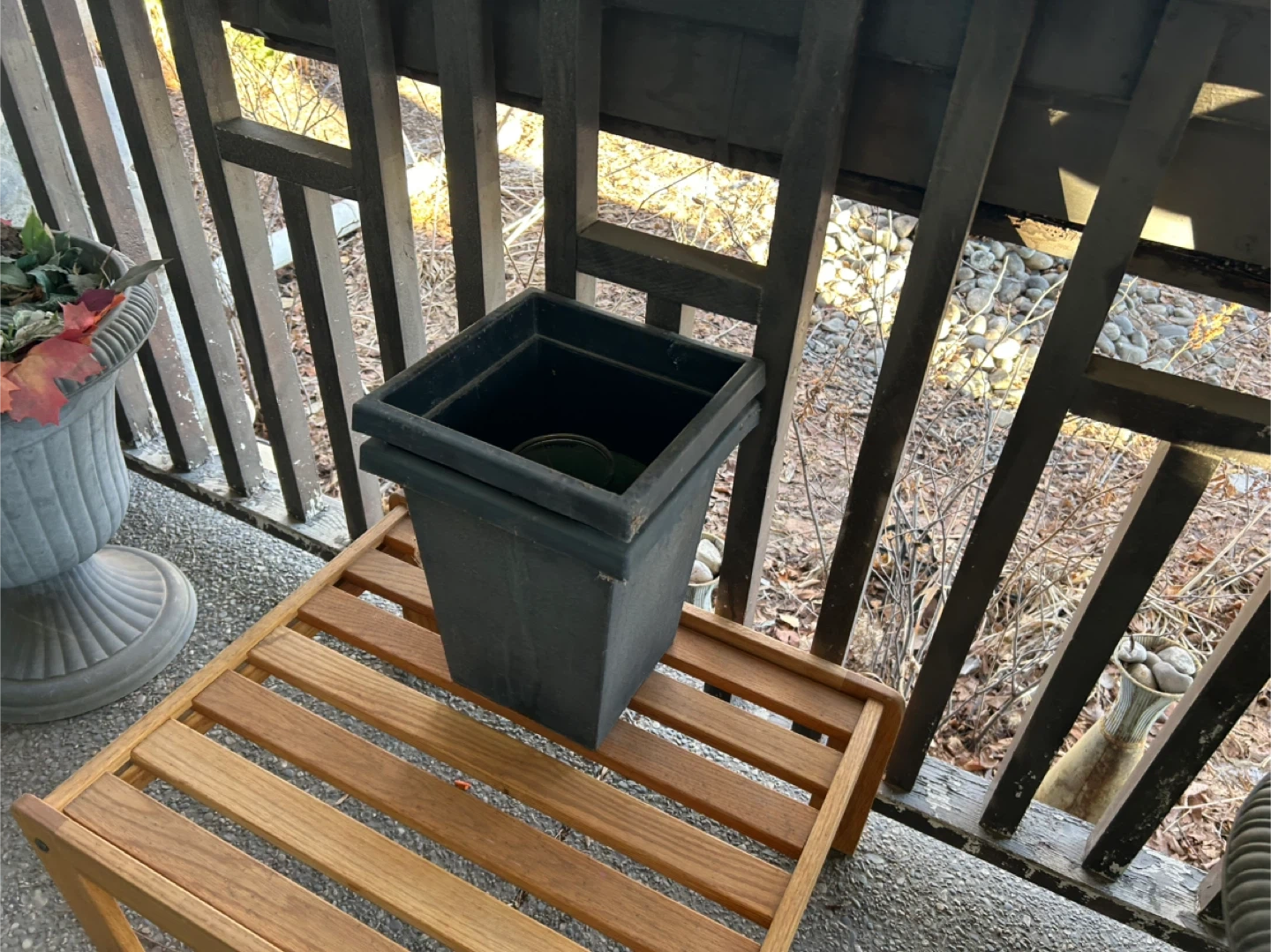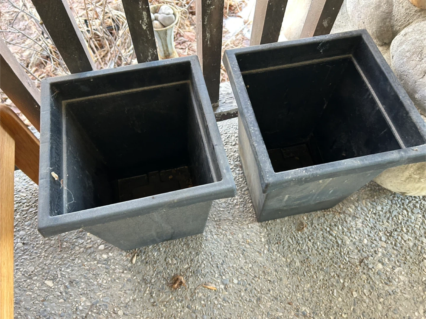 Selling a set of two black, square plastic flower pots. They're perfect for adding some greenery to your balcony or garden. They are in good condition and ready for your favourite plants