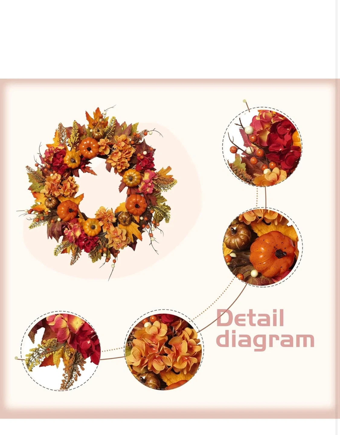 This beautiful fall harvest wreath is perfect for adding a touch of autumn to your home. It features a variety of colourful leaves, flowers, and pumpkins. It originally sells for $58.14