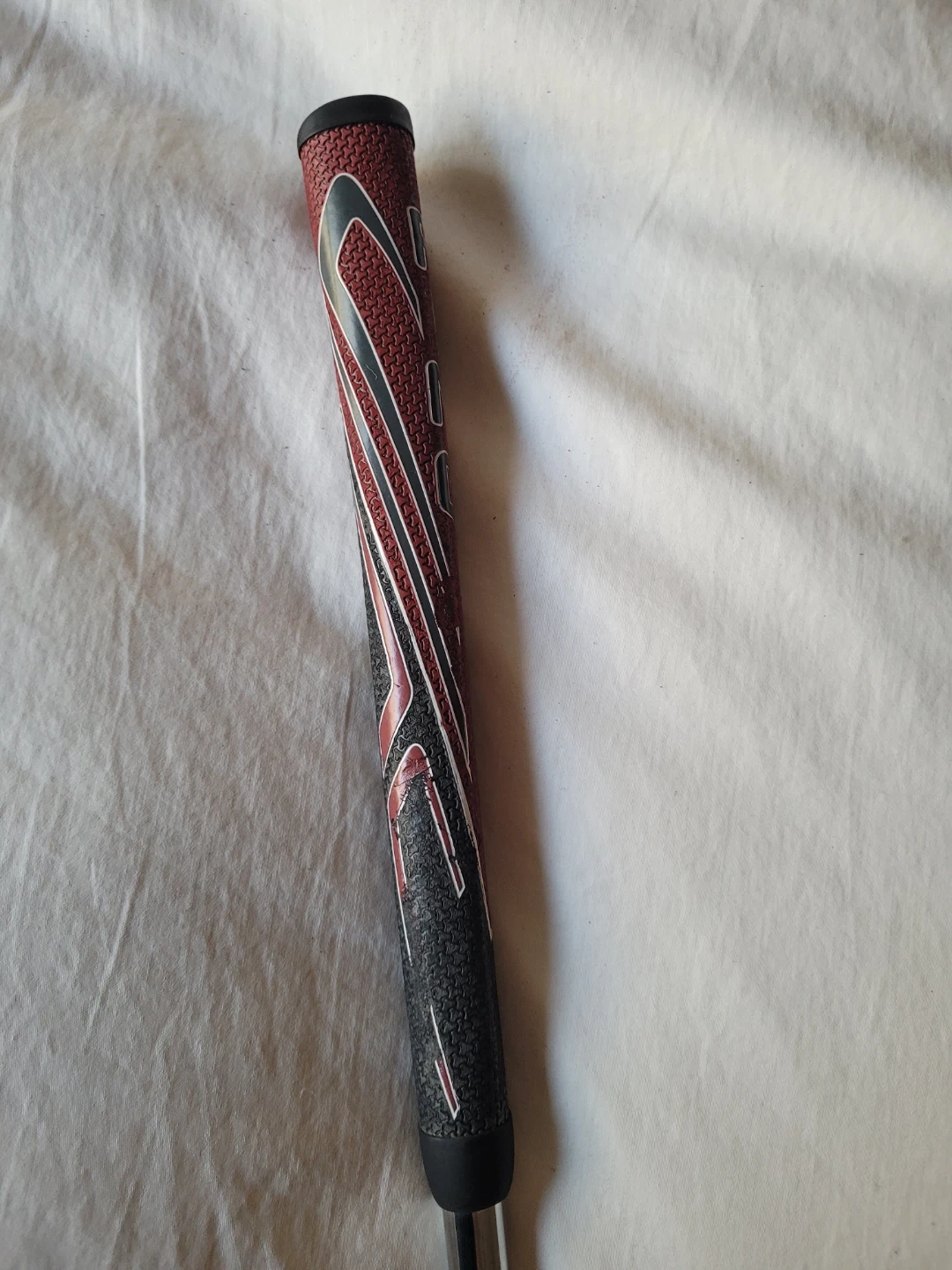 🏆A PING Scottsdale golf putter featuring a mallet-style head with "Y Worry" inscribed. It has a dark finish and a red PING grip. This putter is designed for golfers looking for stability and alignment assistance on the greens.