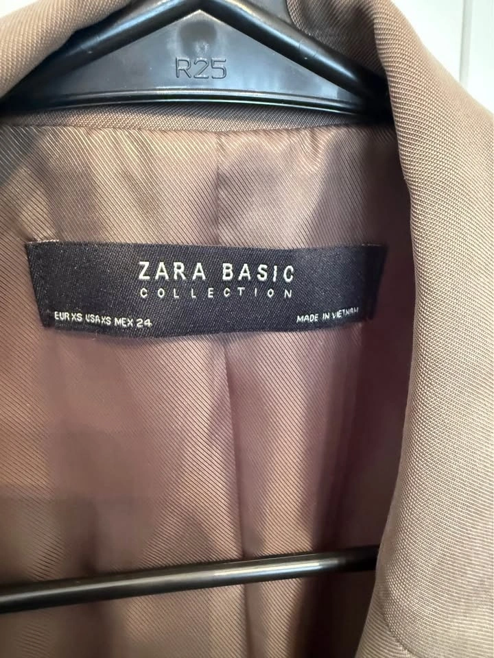 Classic tailored ZARA blazer in a versatile taupe/ mocha shade. Fully lined, double-breasted style with structured shoulders-perfect for office, meetings or smart casual looks. Size XS. Great condition (no stains/tears). Length 27".