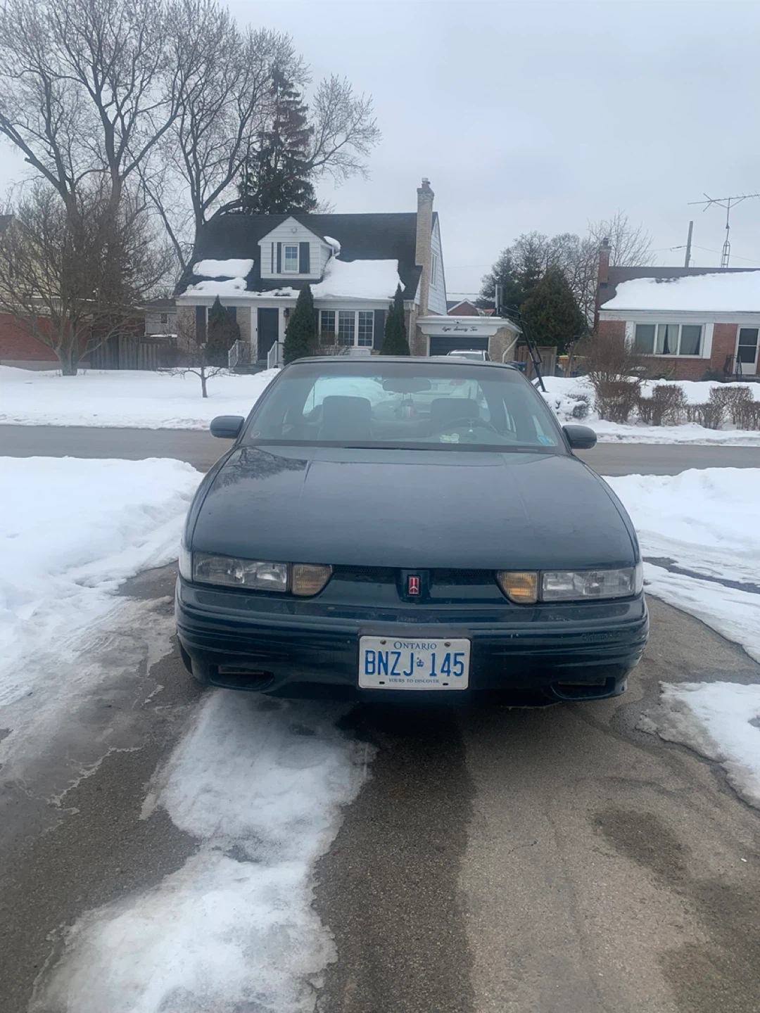 Selling a 95 Oldsmobile Cutlass Supreme SL. It's a four-door sedan. The exterior is a dark teal colour, leather grey interior mint condition.