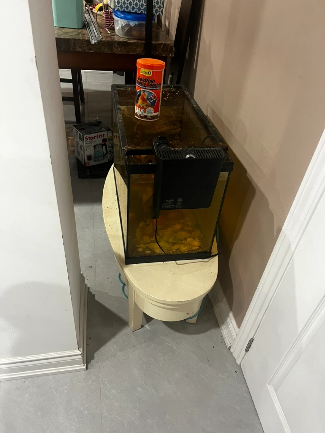 Aquarium 20 gallon,four 3yrs old fishes,food,filters,air pump