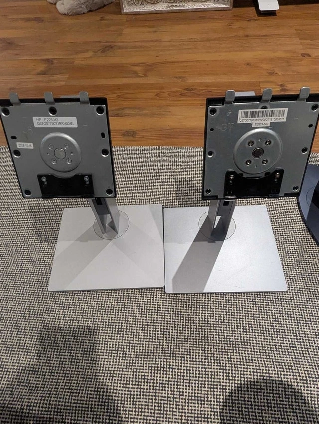 These are used HP monitor stands in good condition, ready to support your display. Ideal for creating an ergonomic workspace, these stands provide stable support. They have a square base and metal finish. These stands are compatible with a variety of HP monitors. If the ad is up, the item is available. Get in touch to arrange a pickup!