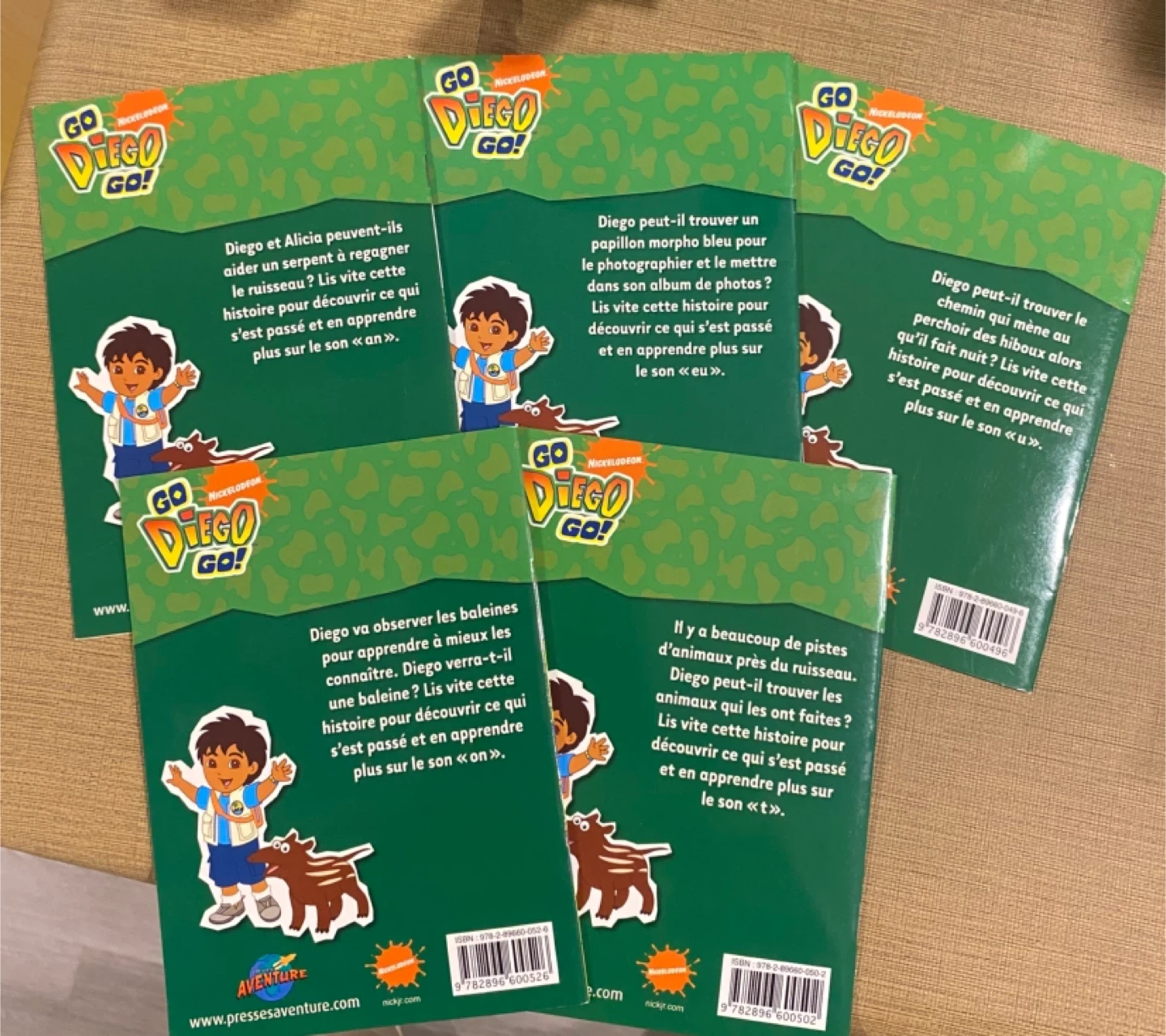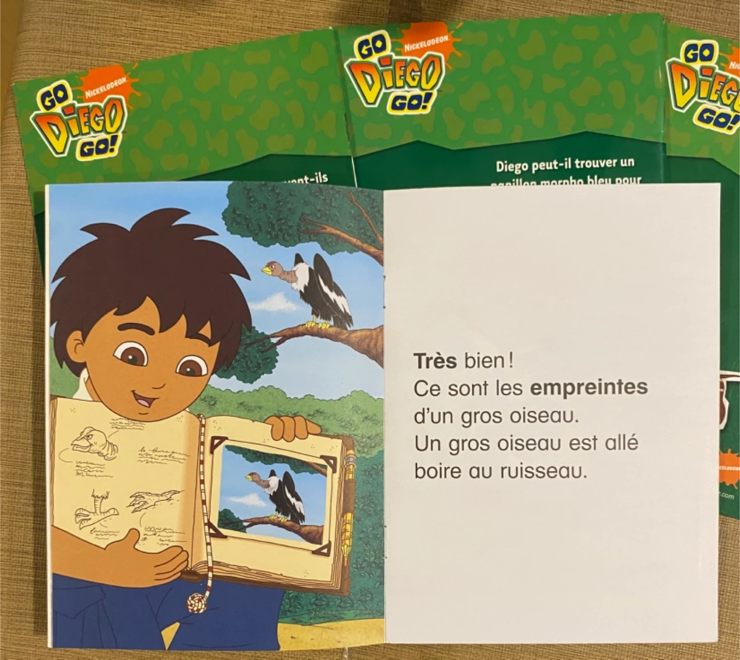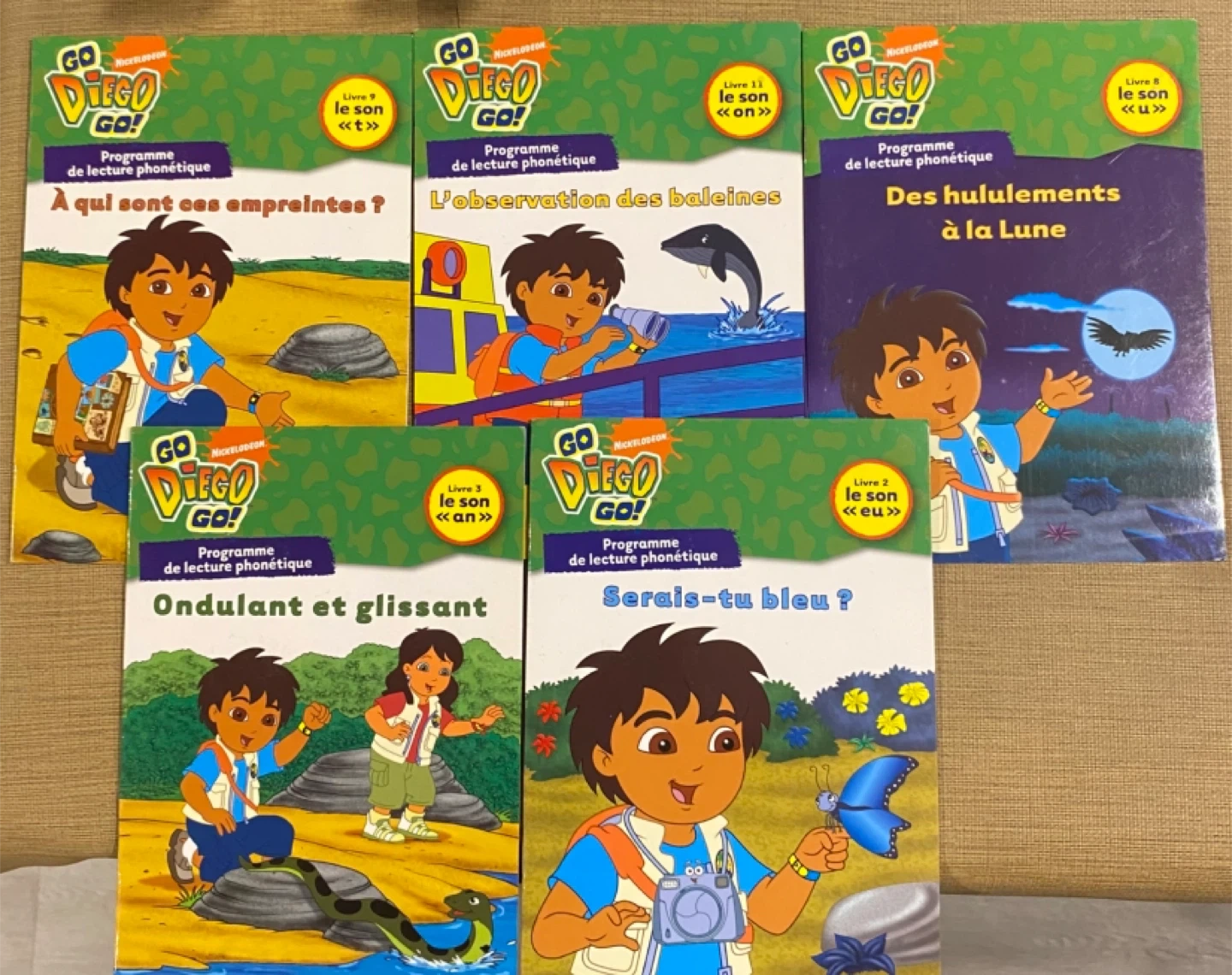 Go, Diego, Go! Early Readers French children's books focusing on phonics and learning sounds and repetition. Plus 2 Scholastic French Books. These books feature engaging stories and illustrations from the popular Nickelodeon show. Great for young readers and French Immersion students. Each book has 16 pages.