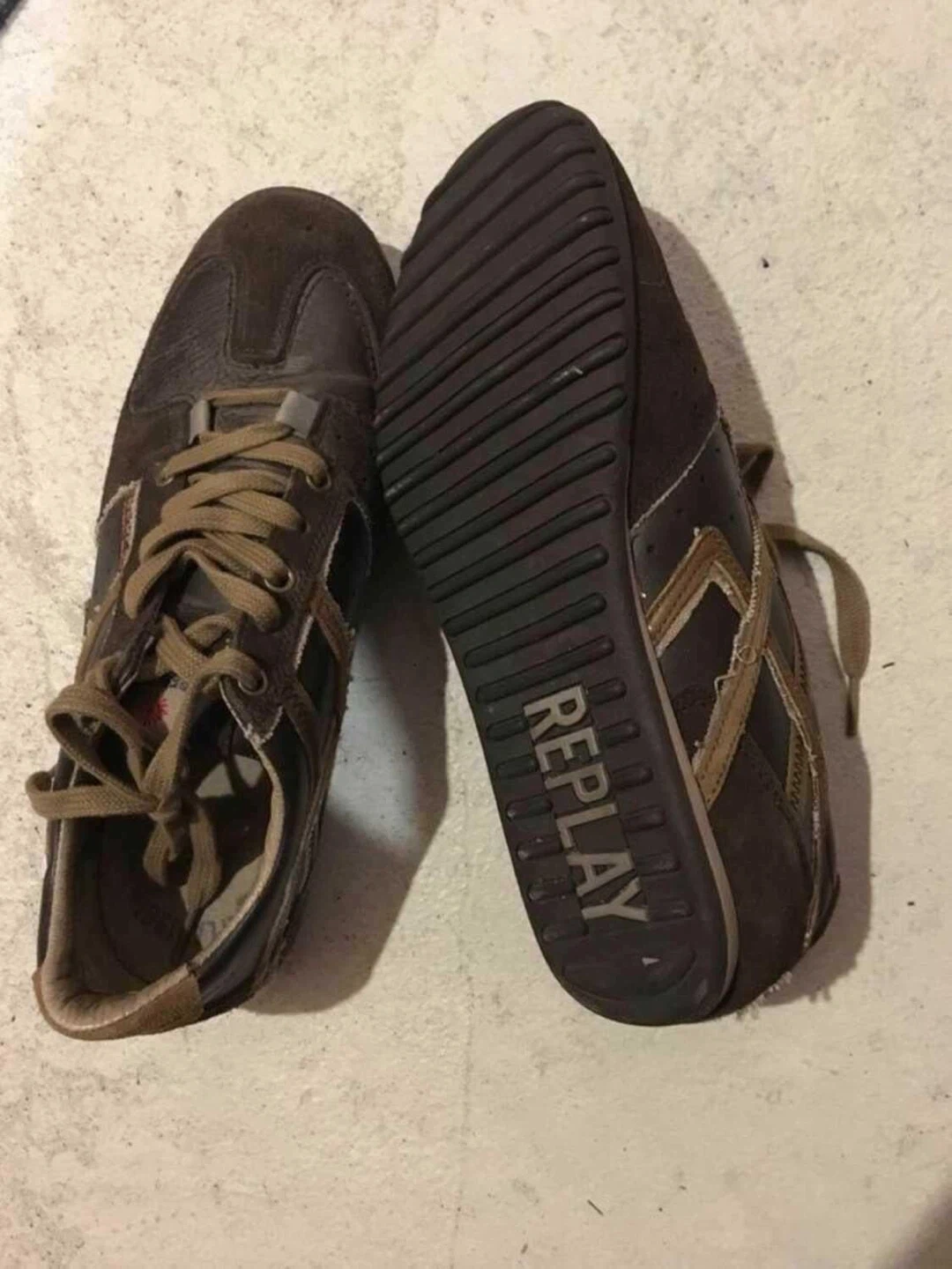 These are new Replay sneakers in a brown colour. They're made with suede and leather details. The shoes come with the original Replay box.