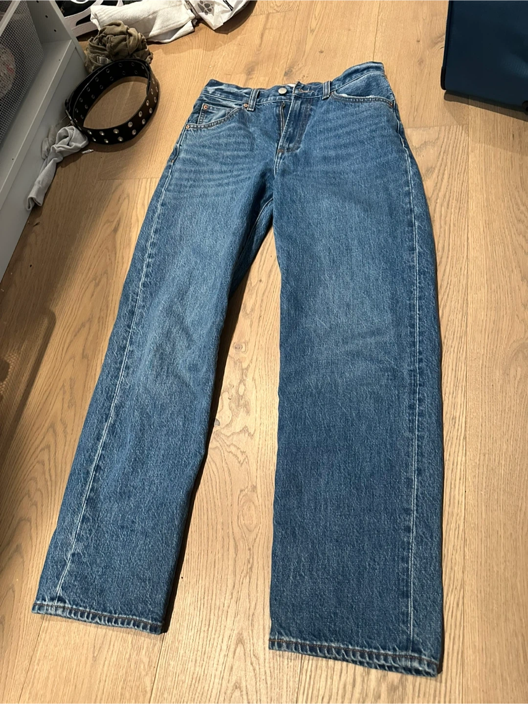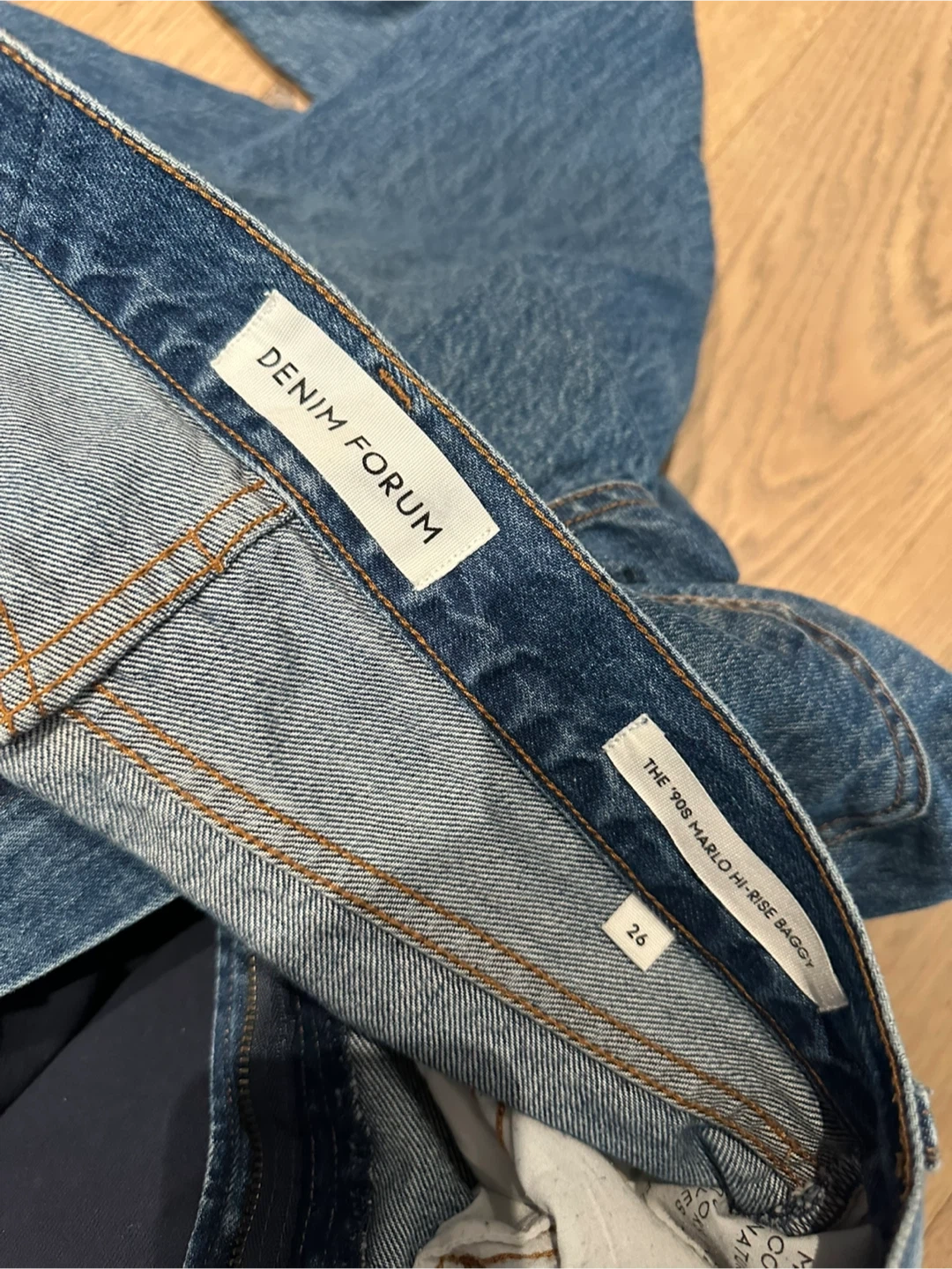 ARITZIA Denim Forum jeans in a hi-rise baggy fit. They are very cute and it great working condition! They are a size W26 and fit true to size. They have some stretch and are very comfortable.