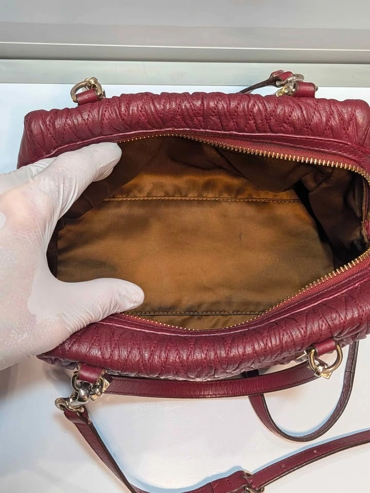 A rare find from the iconic Madison Collection. This is the sought-after "Small" version (Style 18620/15942), known for its intricate Italian Nappa leather pleating—a craftsmanship detail no longer in production.