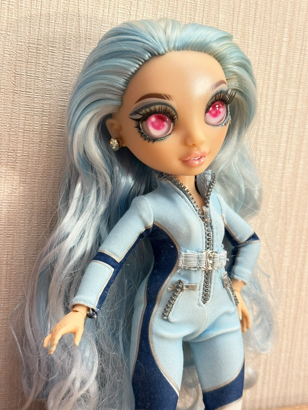 2. Gabriella Icely (blue doll) has red eyes but everything else is fine. She has shiny earrings which is a bonus.