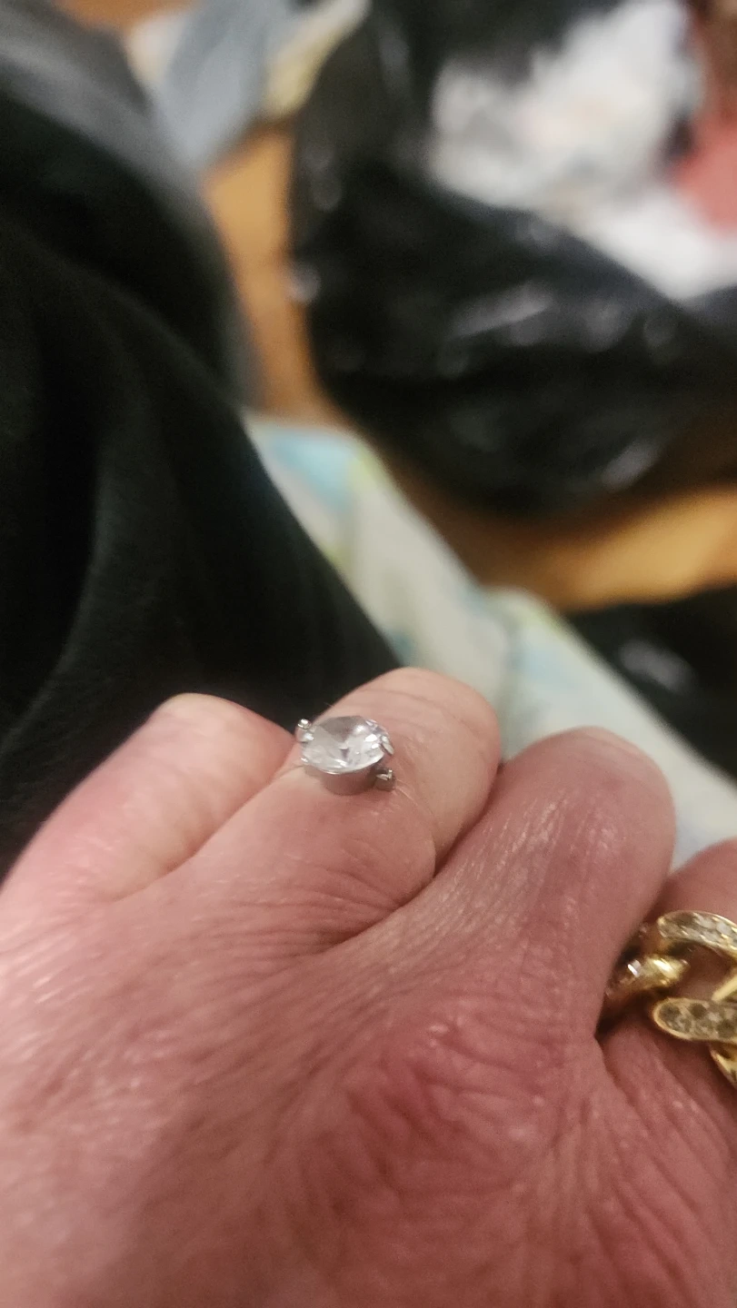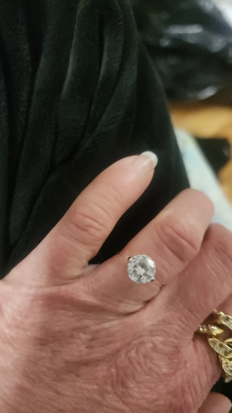 This ring features a large, clear stone set in a silver-toned band. It's a statement piece that catches the light beautifully. Perfect for adding a touch of glamour to any outfit!