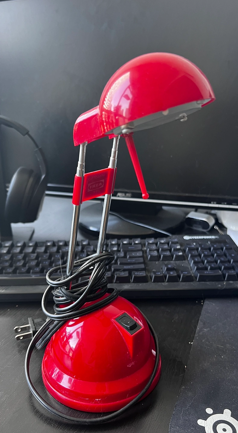 In good working condition. The lamp can extend taller, the arm is also flexible to move forward and back.