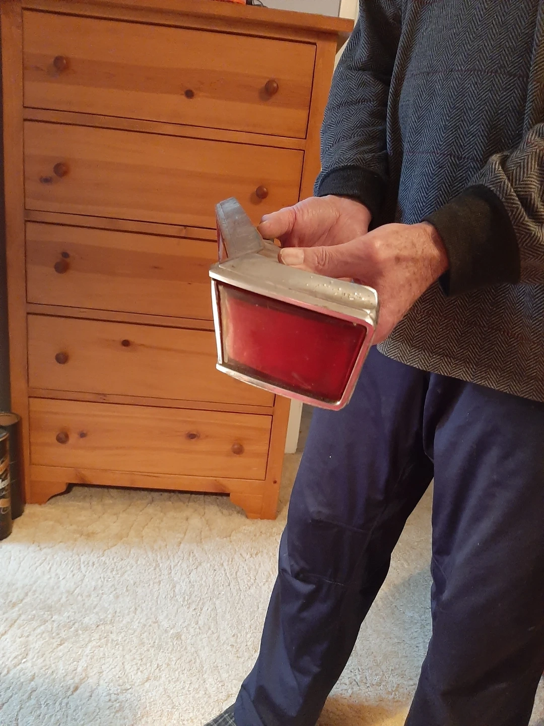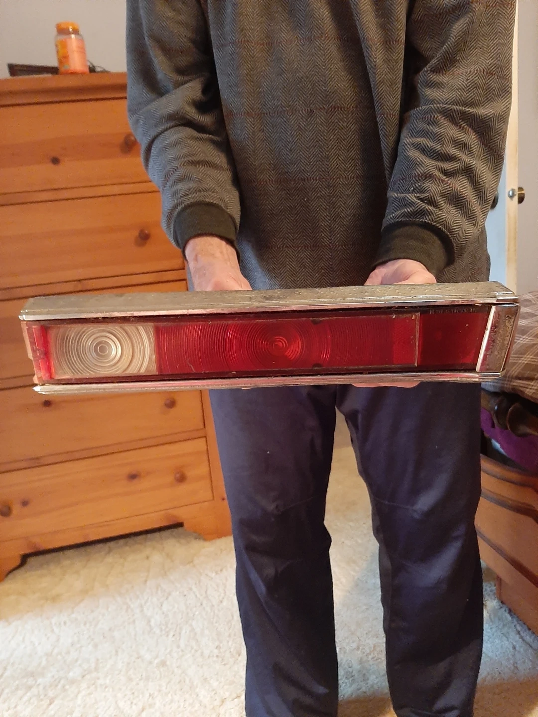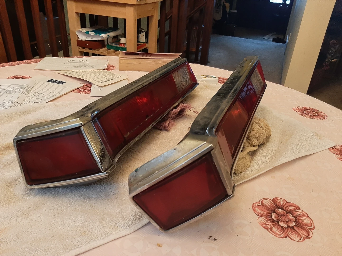 vintage car tail lights with chrome bezel. Red lense with clear reverse lens. original removed from car about 1979