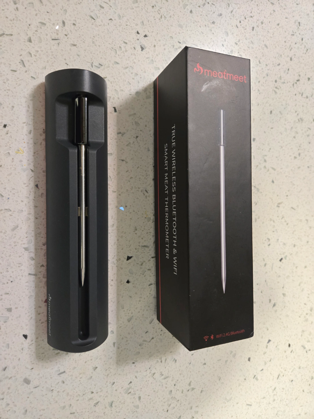 True wireless Bluetooth & WiFi smart meat thermometer. Ultra-long battery life, probe included. Charging stand. never used.