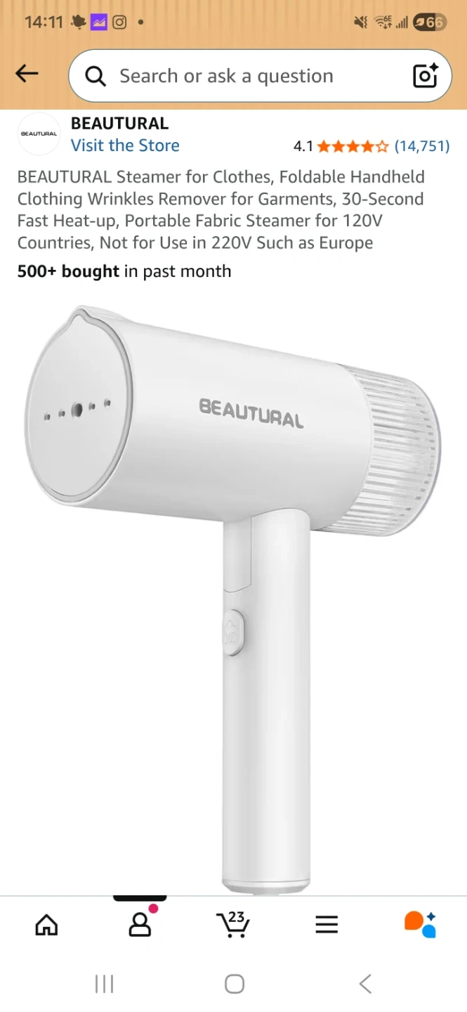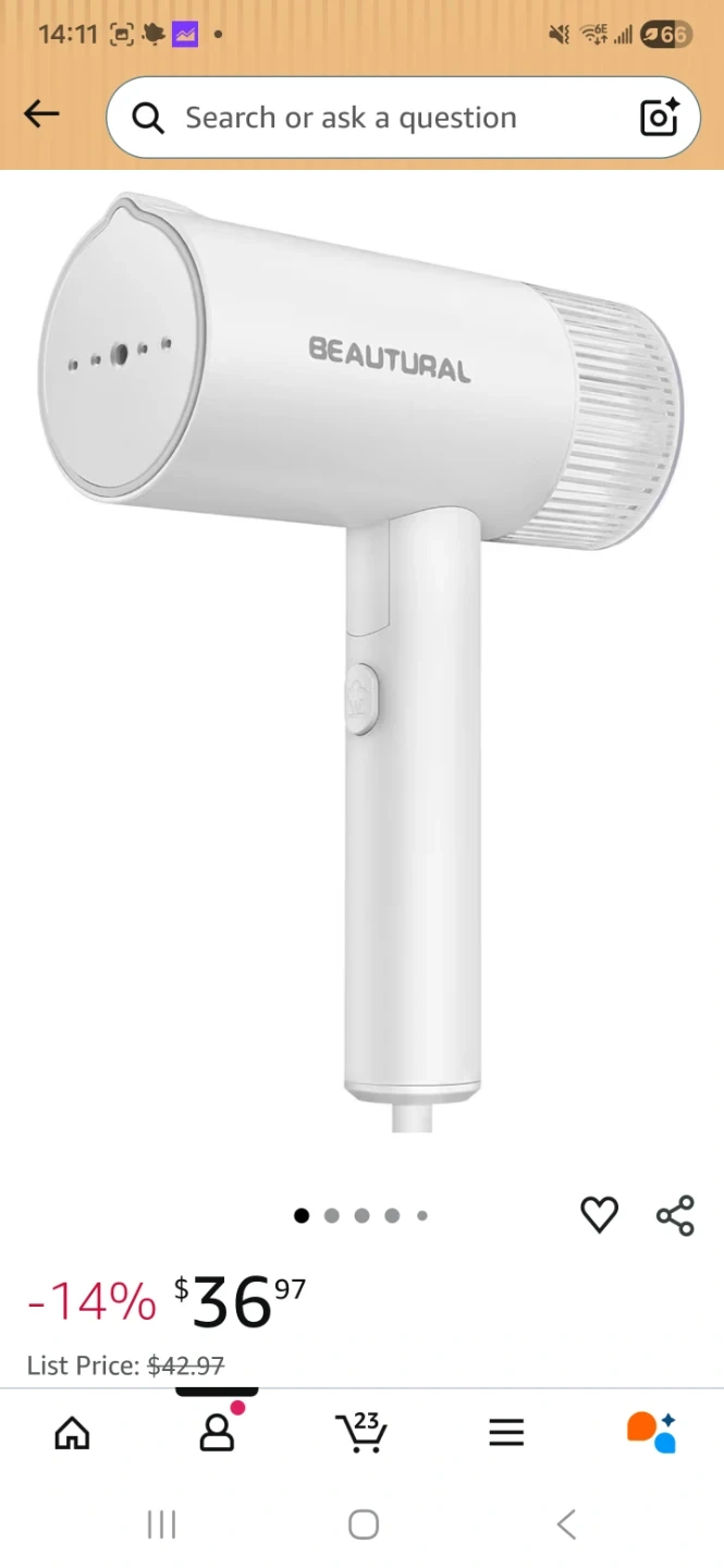 This is a BEAUTURAL steamer for clothes. It's a foldable handheld garment wrinkle remover. It heats up fast, ready in 30 seconds. Includes a storage bag. New in Amazon for 42.97+tax.