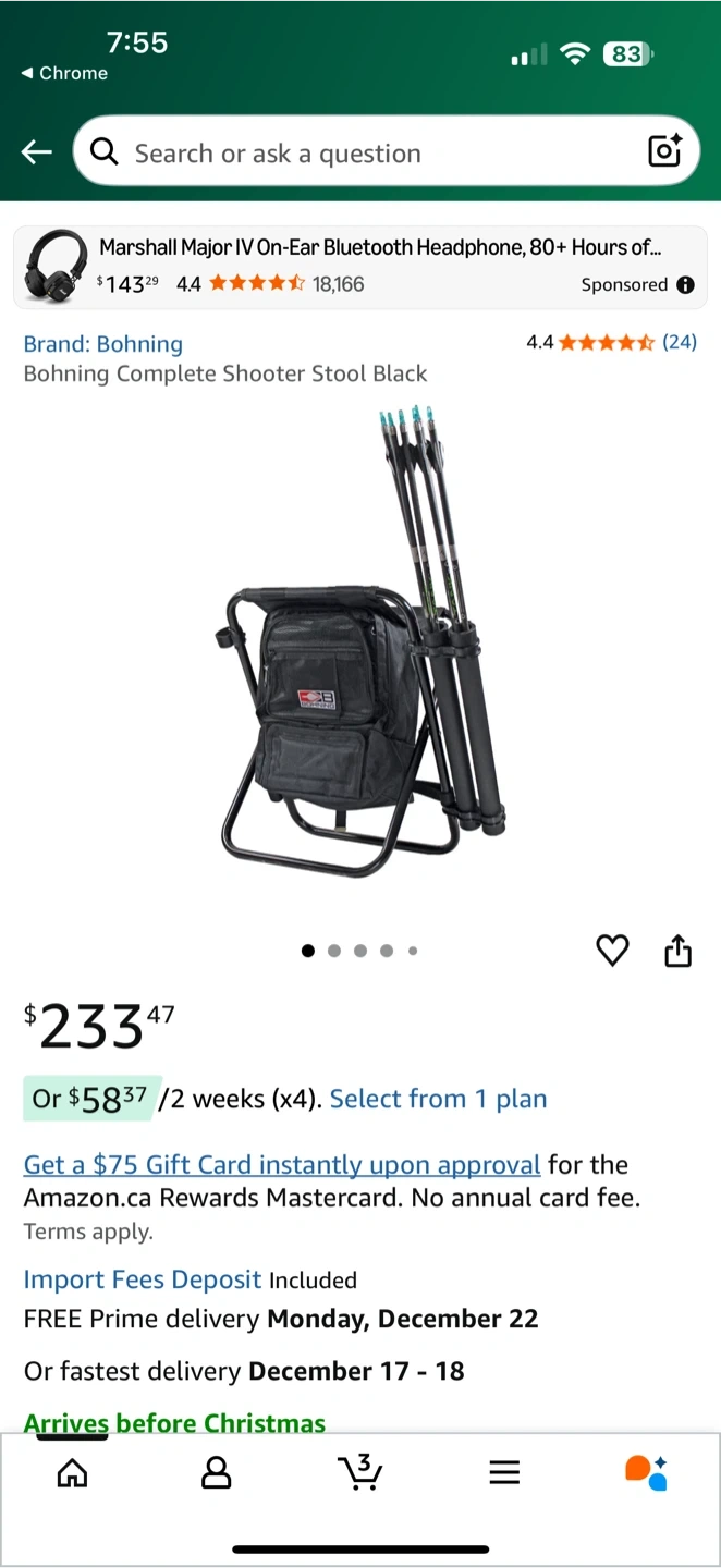 This Bohning stool is black and comes with a convenient backpack. It features a built-in cooler and holders for your equipment. It's perfect for outdoor activities!