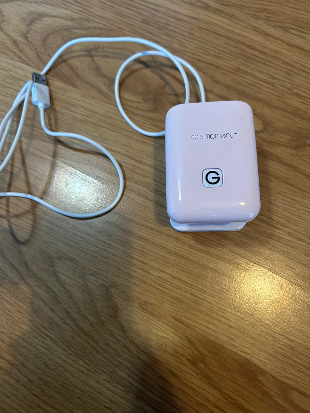This is a GelMoment Mini LED Lamp, model GM-500. It's powered by DC-5V 0.6A and has a 6W output. Made in China.
