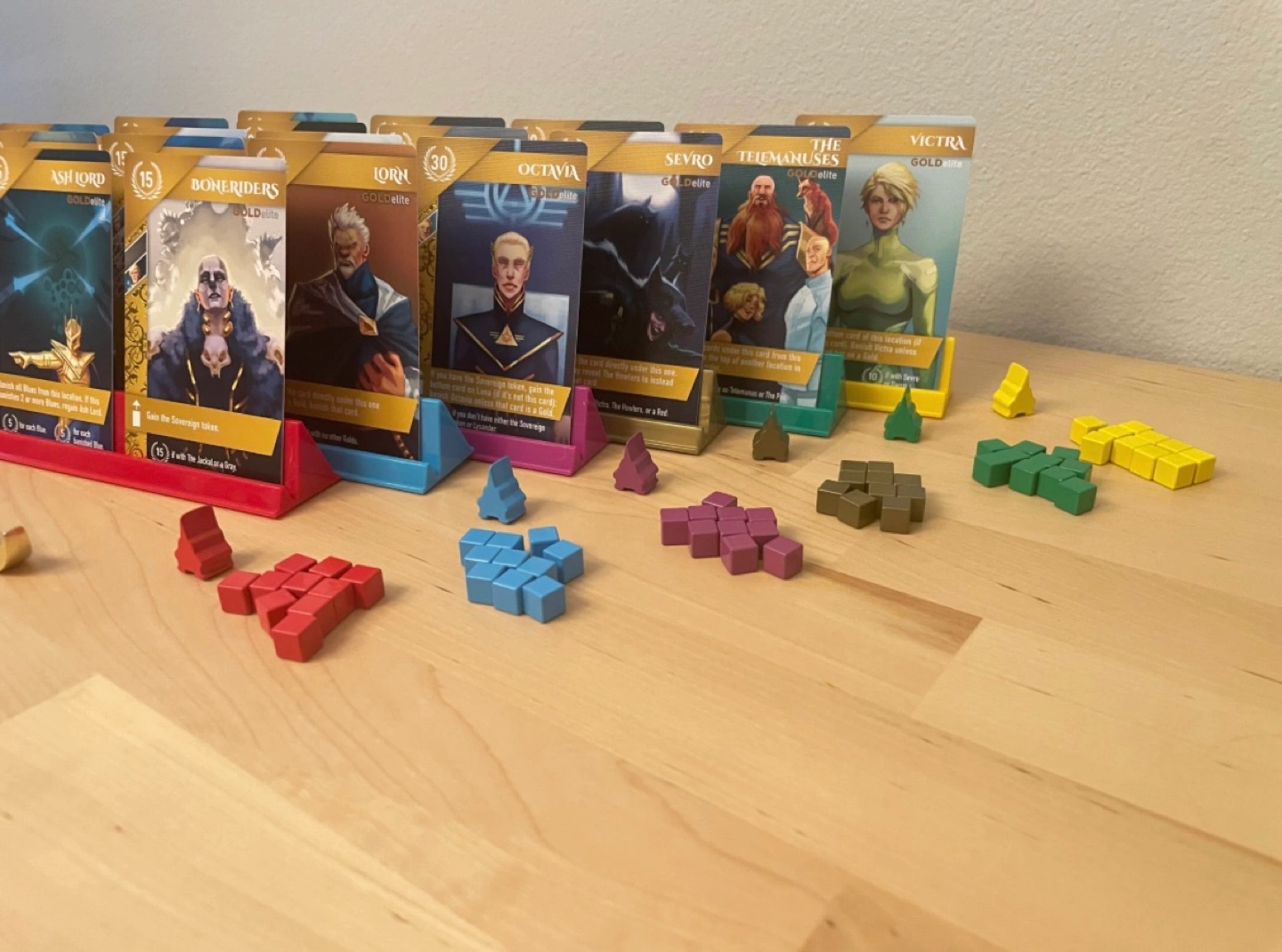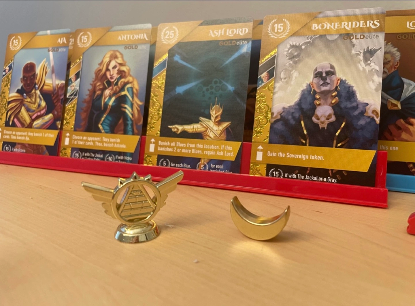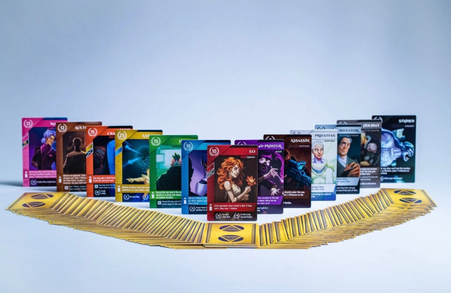 Enter the futuristic universe of Red Rising, based on the book series by Pierce Brown featuring a dystopian society divided into 14 castes. You represent a house attempting to rise to power as you piece together an assortment of followers (your hand of cards). Will you break the chains of the Society or embrace the dominance of the Golds?