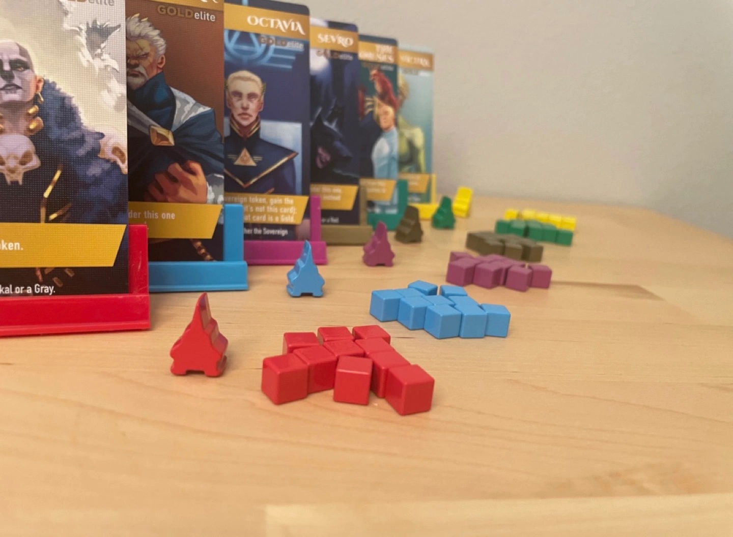 This upgrade pack for Red Rising contains 21 gold-foil cards, 6 card holders, 60 metal cubes, 6 metal fleet tokens, 1 metal Sovereign token, and 1 metal crescent-moon first-player token.