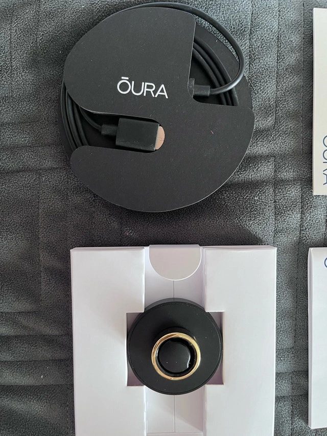 I'm selling an Oura Ring, Generation 3, in size 7. It's the gold 'Heritage' style, and has been gently used. It comes with all original packaging, instructions, and the charger. This ring tracks sleep, activity, heart rate, and more, providing valuable insights into your overall health and wellness. It is in very good condition. It requires a membership through Oura for all of its benefits and features but will still give you some insights without the membership. If the ad is up, it's still available. I'm parting with it because I switched to another device. I personally used it for cycle tracking, pairing it with Natural Cycles (a non-hormonal birth control method) therefore I mostly wore it while asleep, and it’s very well maintained. Model: Generation 3, Size: 7, Style: Heritage, Colour: Gold. Asking $125, or best offer. Cash only.