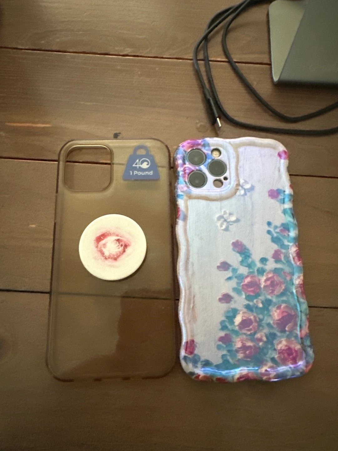 iPhone 12 Pro with MagSafe charger (and cord) with 2 cases. Slight scratches on front screen that are very not noticeable and it does not affect performance or viewing. Battery health is at 82%. The phone cases are included. One is with flowers, and is only a couple months old, the other one is quite old and I can’t get the sticker or pop socket off. lol. Price is firm, I will not ship anywhere or accept mail order whatever. In person pick up only. Cash please. Also text, chat, or email only as I am at work until 7pm. After 7pm, calls are okay! Thank you! :)