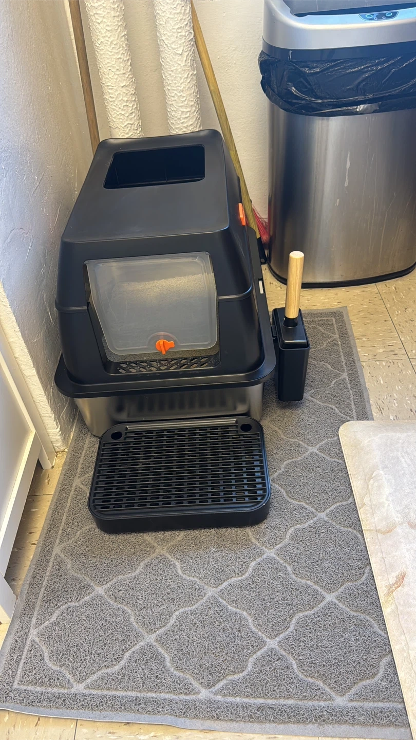 This enclosed litter box offers a semi-enclosed or all-enclosed option for your cat. It's designed for easy assembly and comes with