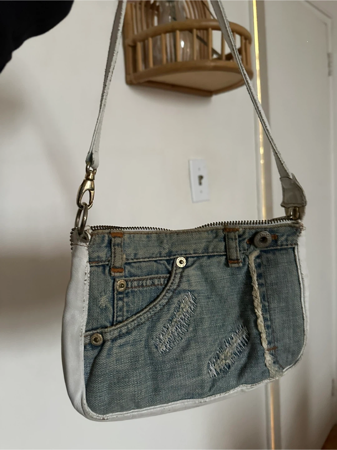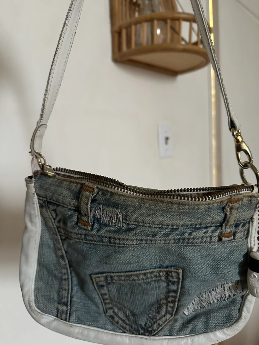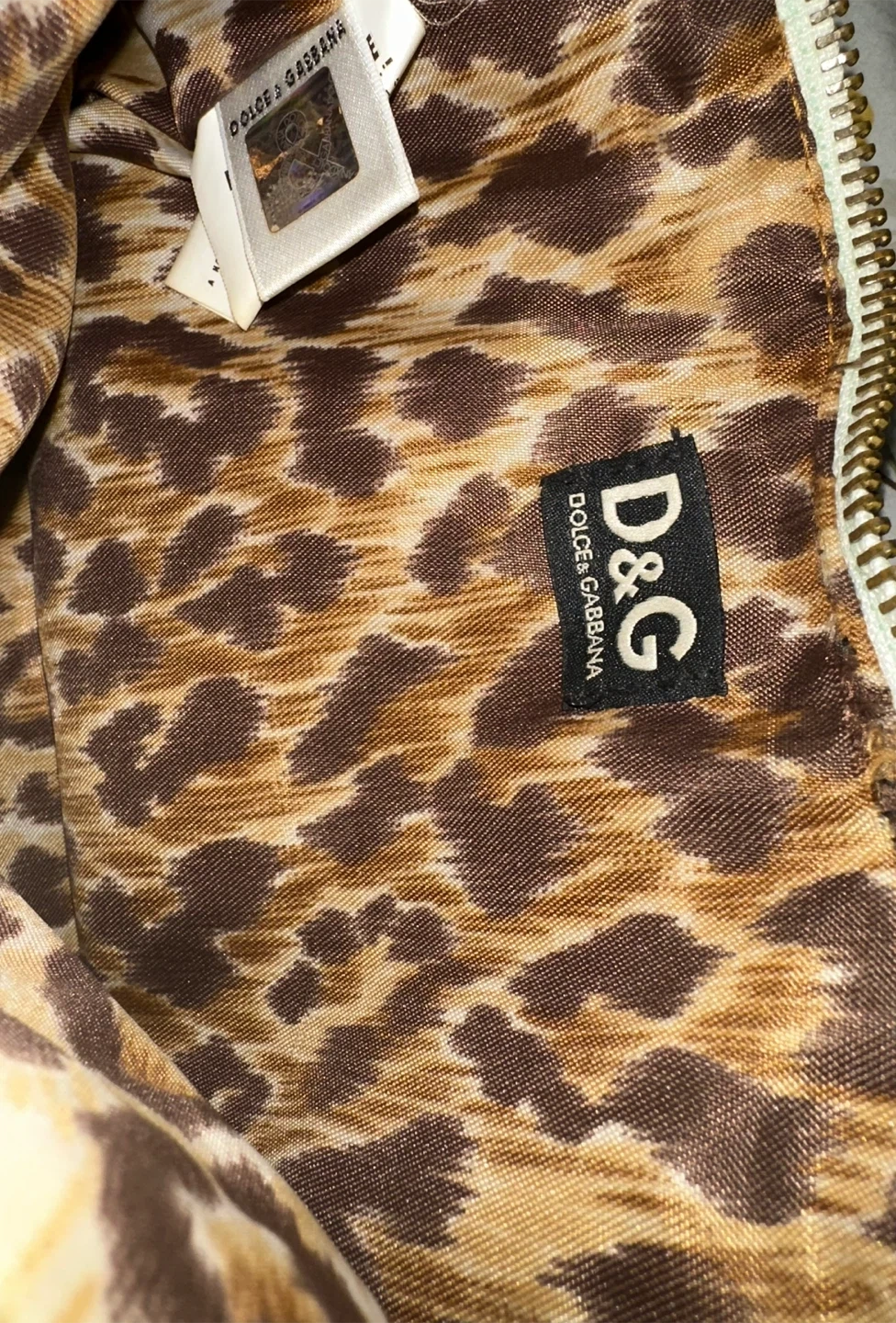 Selling a cute Dolce & Gabbana denim shoulder bag. The bag has a unique denim design with white leather trim and a fun leopard print lining. It's in good condition and ready for a new owner! Open to offers