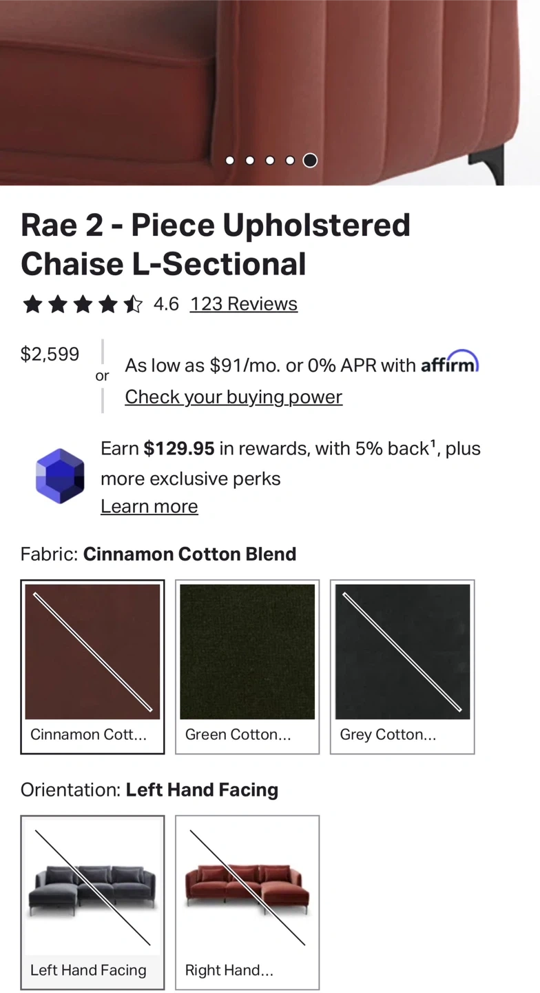 Cinnamon Color L-Shape Sectional Sofa