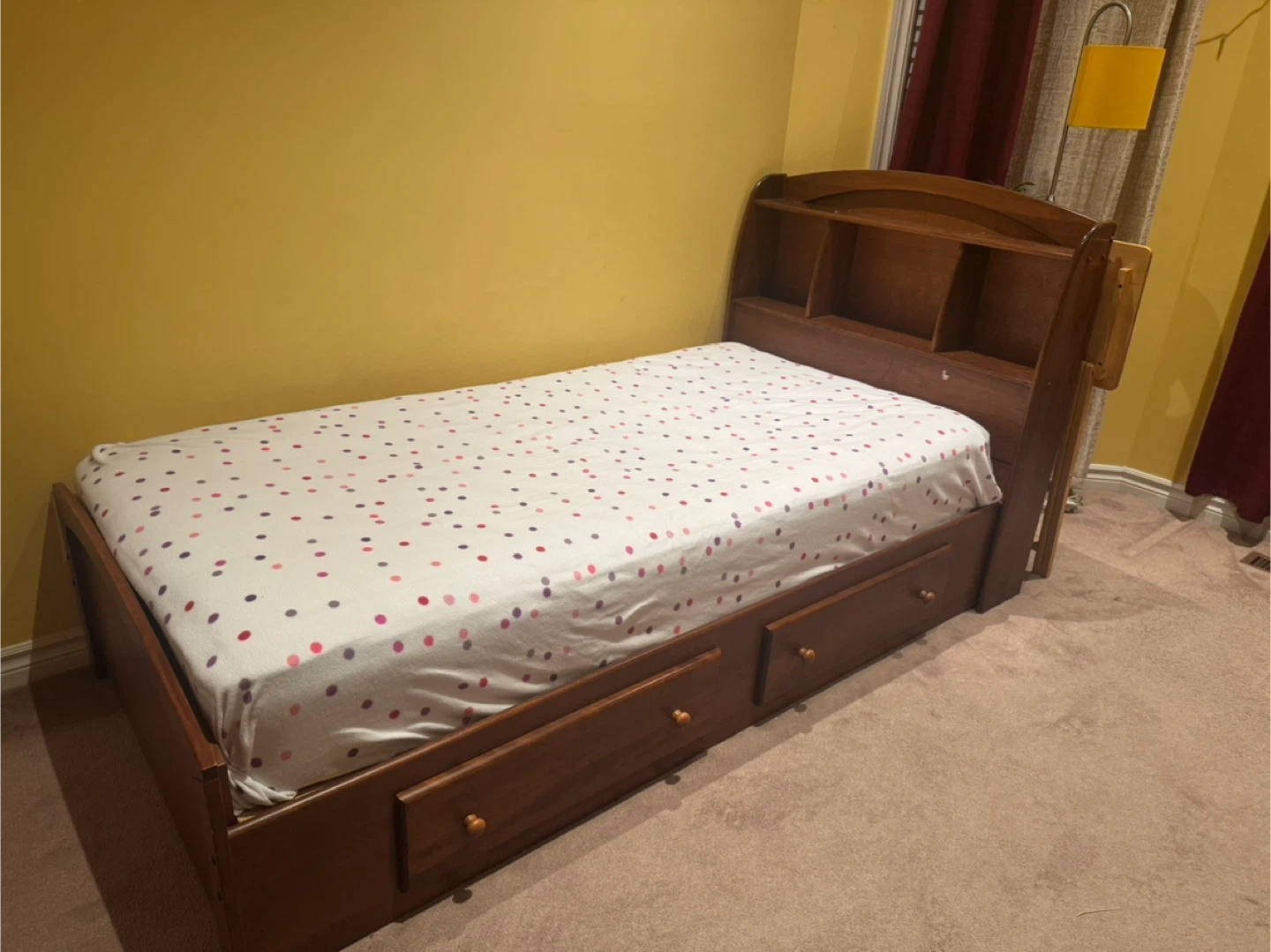 Wooden Twin Bed Frame with Storage Drawers& 1 nightstand