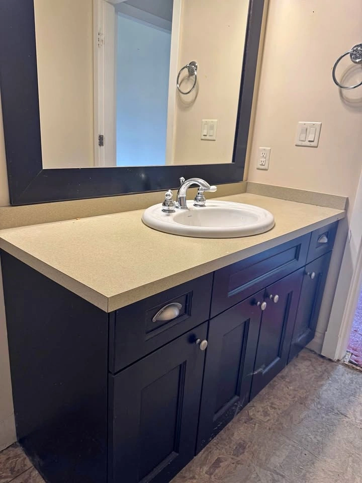 Clean and functional 54-inch bathroom vanity with laminate countertop and sink. Great option for bathroom renovations, rental units, or budget-friendly upgrades.