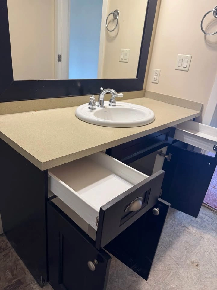 Clean and functional 54-inch bathroom vanity with laminate countertop and sink. Great option for bathroom renovations, rental units, or budget-friendly upgrades.