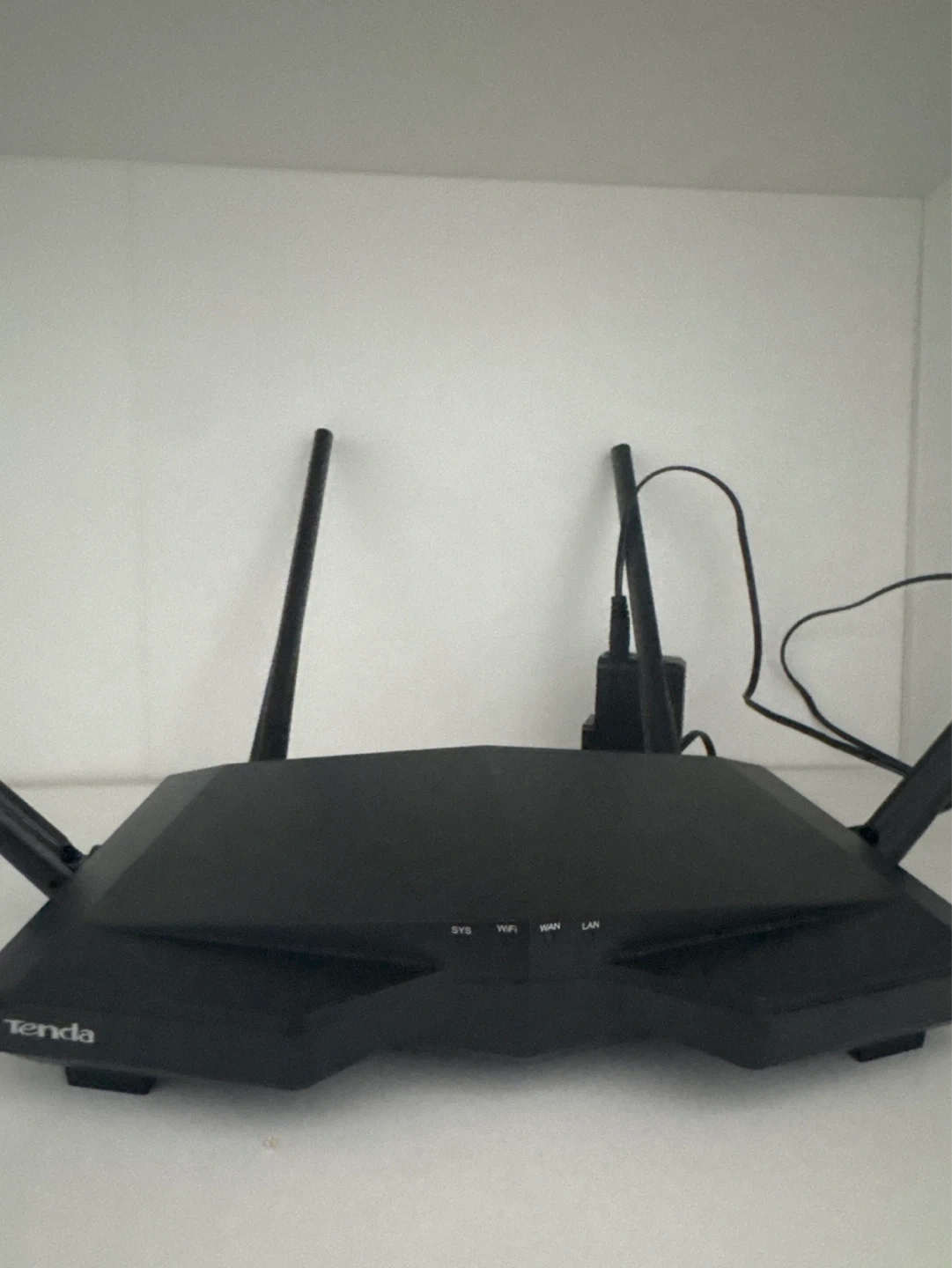 This is a Tenda AC1200 Smart Dual-band WiFi Router, model AC6. It's a black dual-band router with multiple antennas for strong signal coverage. This router is great for enhancing your home's internet connection!