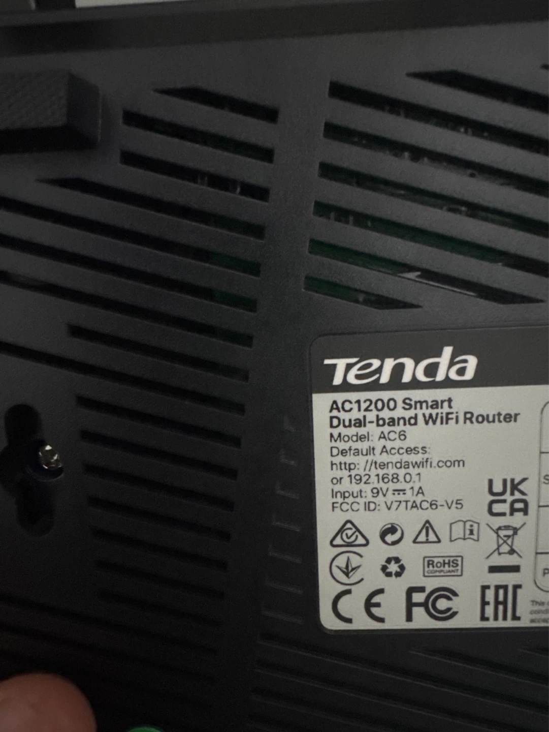 This is a Tenda AC1200 Smart Dual-band WiFi Router, model AC6. It's a black dual-band router with multiple antennas for strong signal coverage. This router is great for enhancing your home's internet connection!