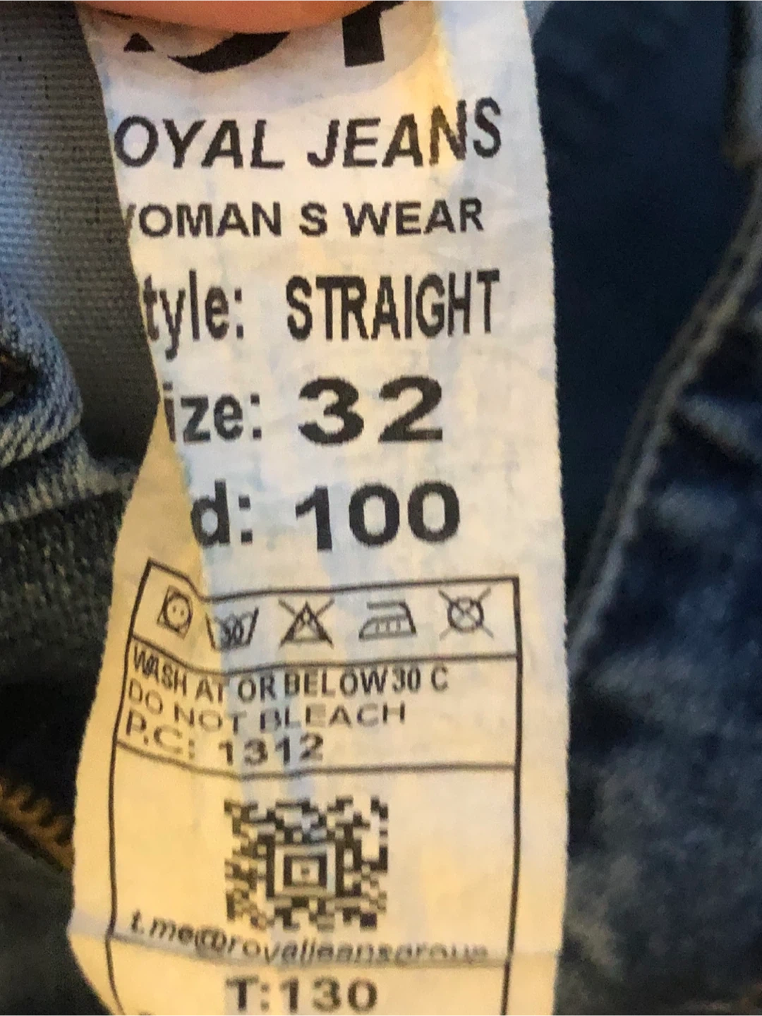 These are Stunning ROYAL WOMAN blue denim jeans. Made of cotton. They have a classic five-pocket design. Size 32. Straight leg! Very flattering look!