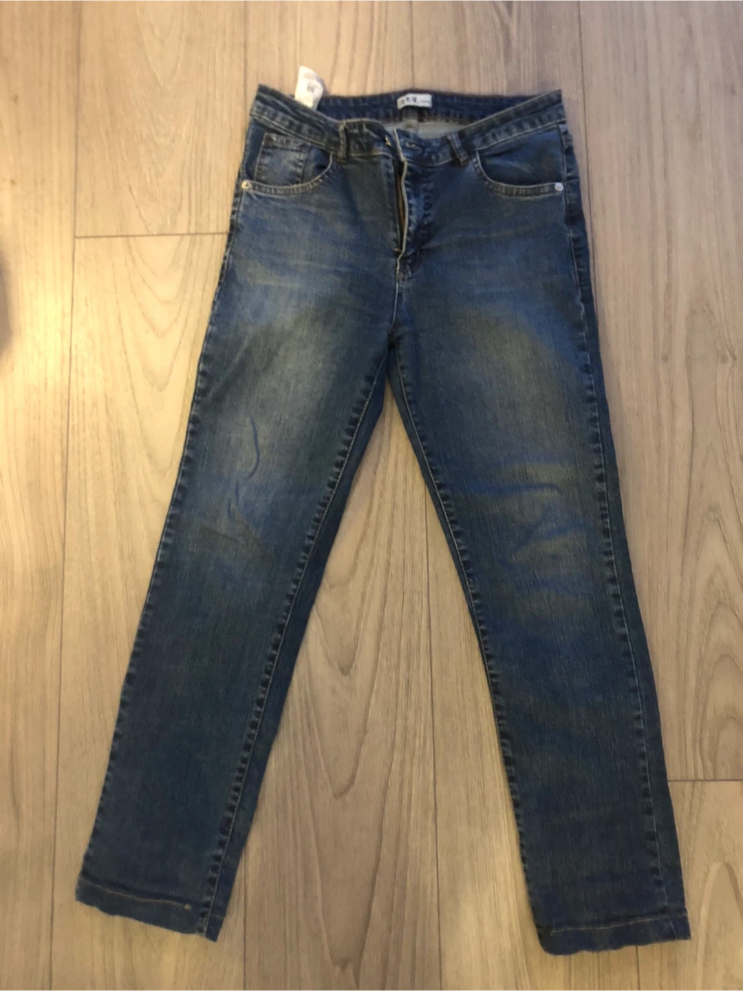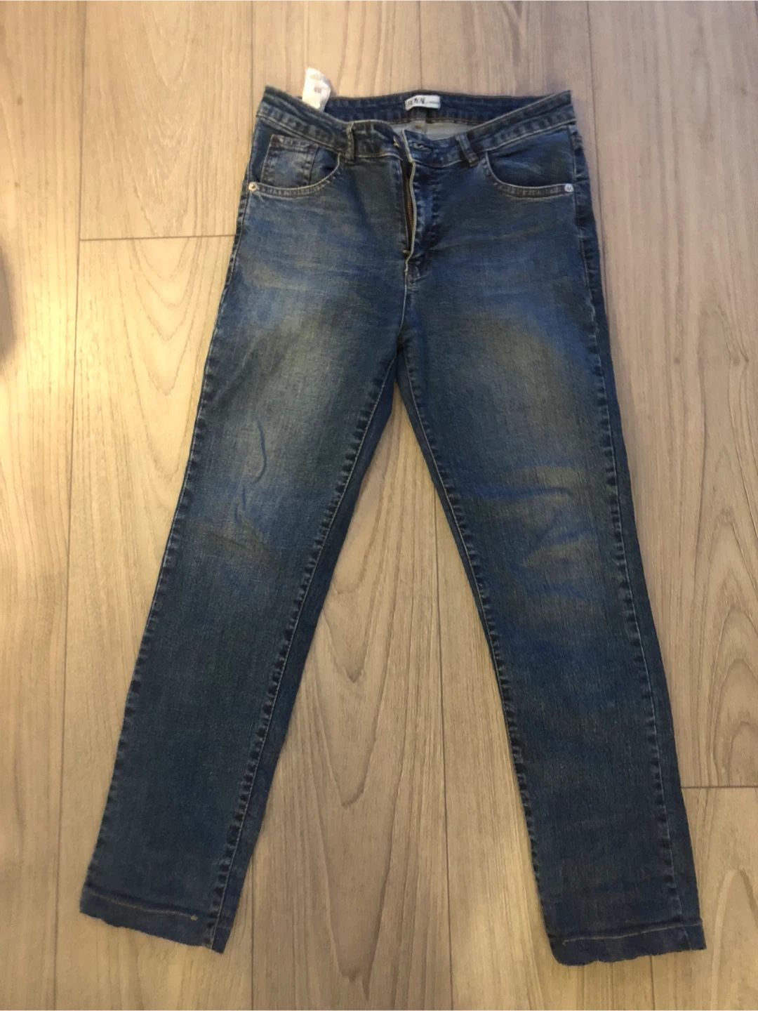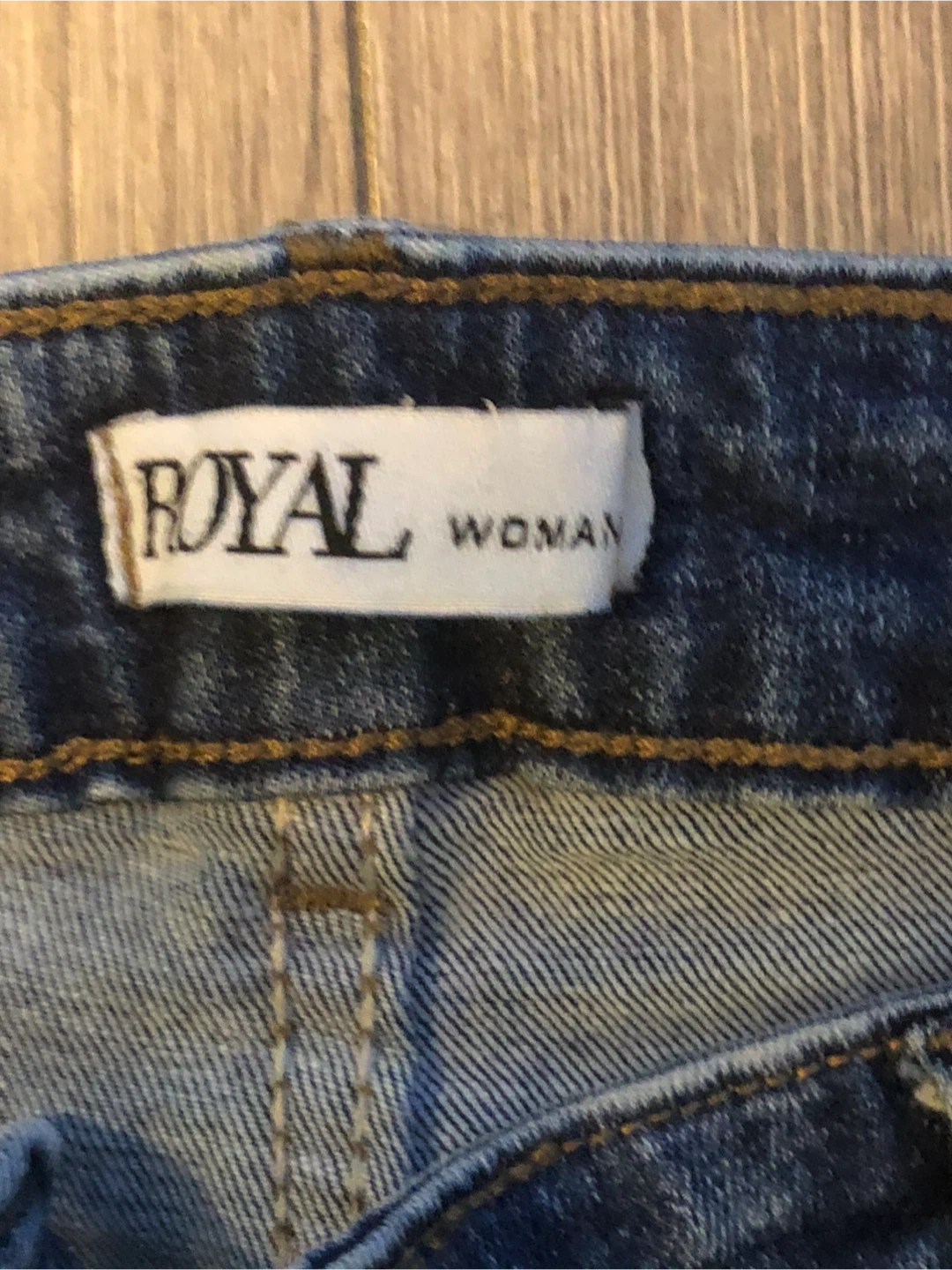 These are Stunning ROYAL WOMAN blue denim jeans. Made of cotton. They have a classic five-pocket design. Size 32. Straight leg! Very flattering look!