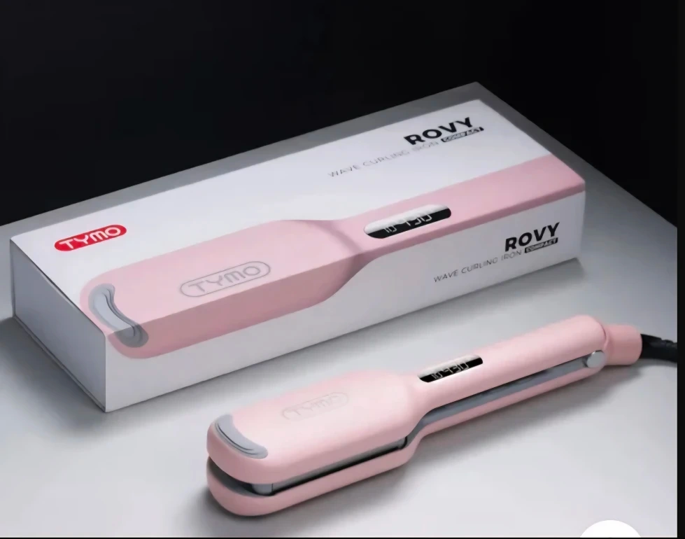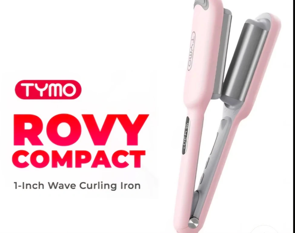 This is a pink TYMO ROVY COMPACT wave curling iron. It's a 1-inch barrel design with a digital display. Compact size for easy styling on the go!